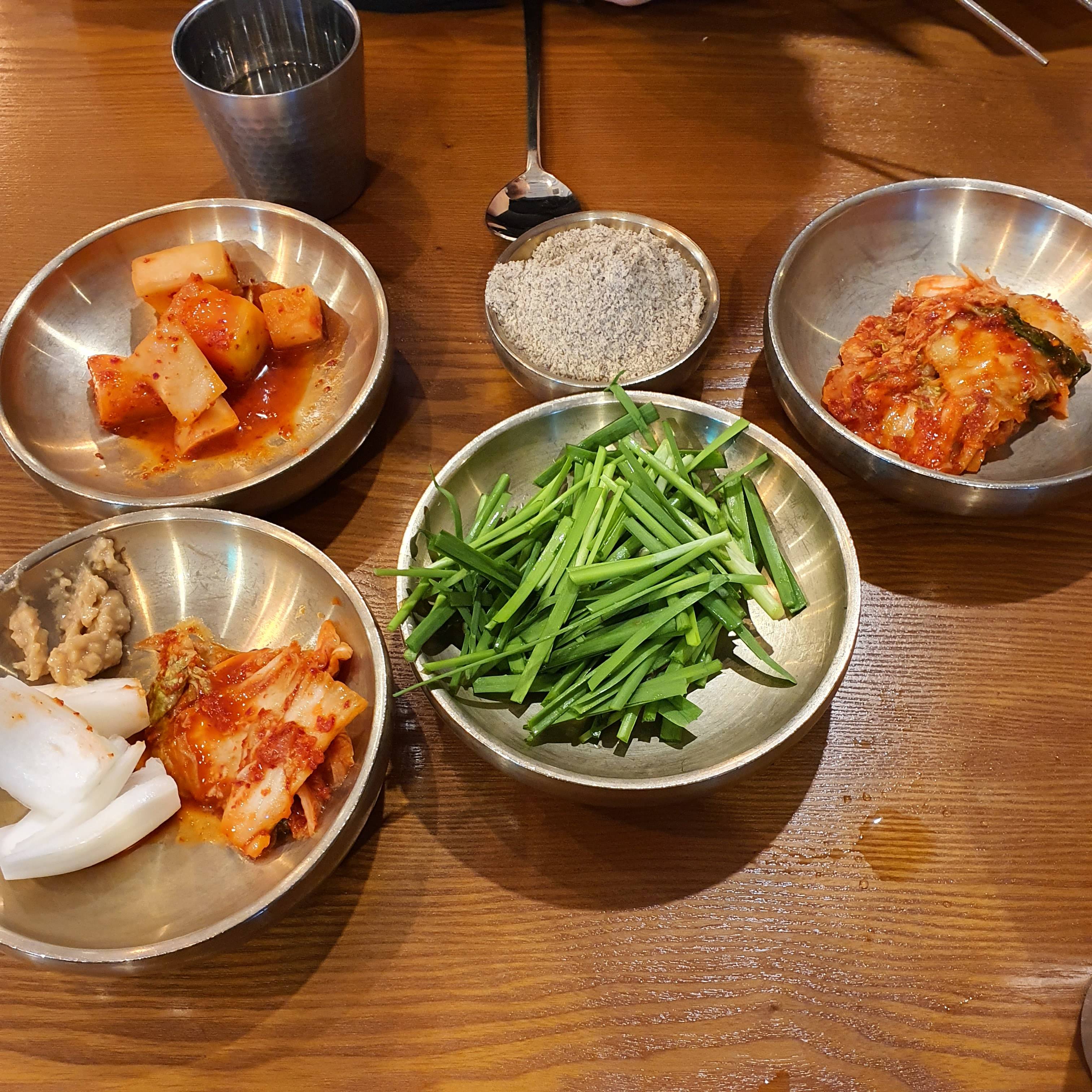 여기가 김치도 나름 맛집이라서 김치랑 깍두기랑 미리 넉넉히 풀어 먹기 위해서 들깻가루도 준비했습니다.
