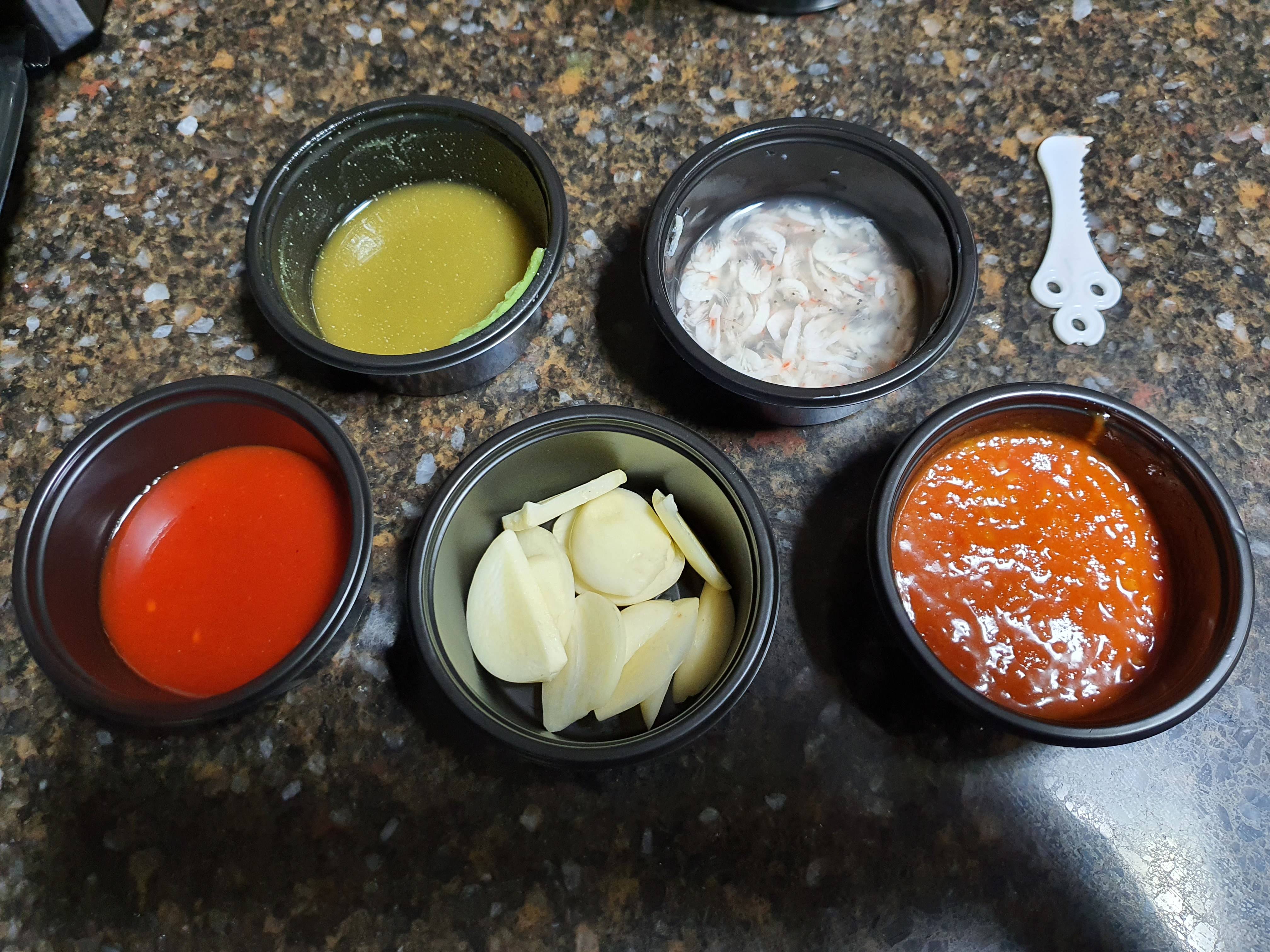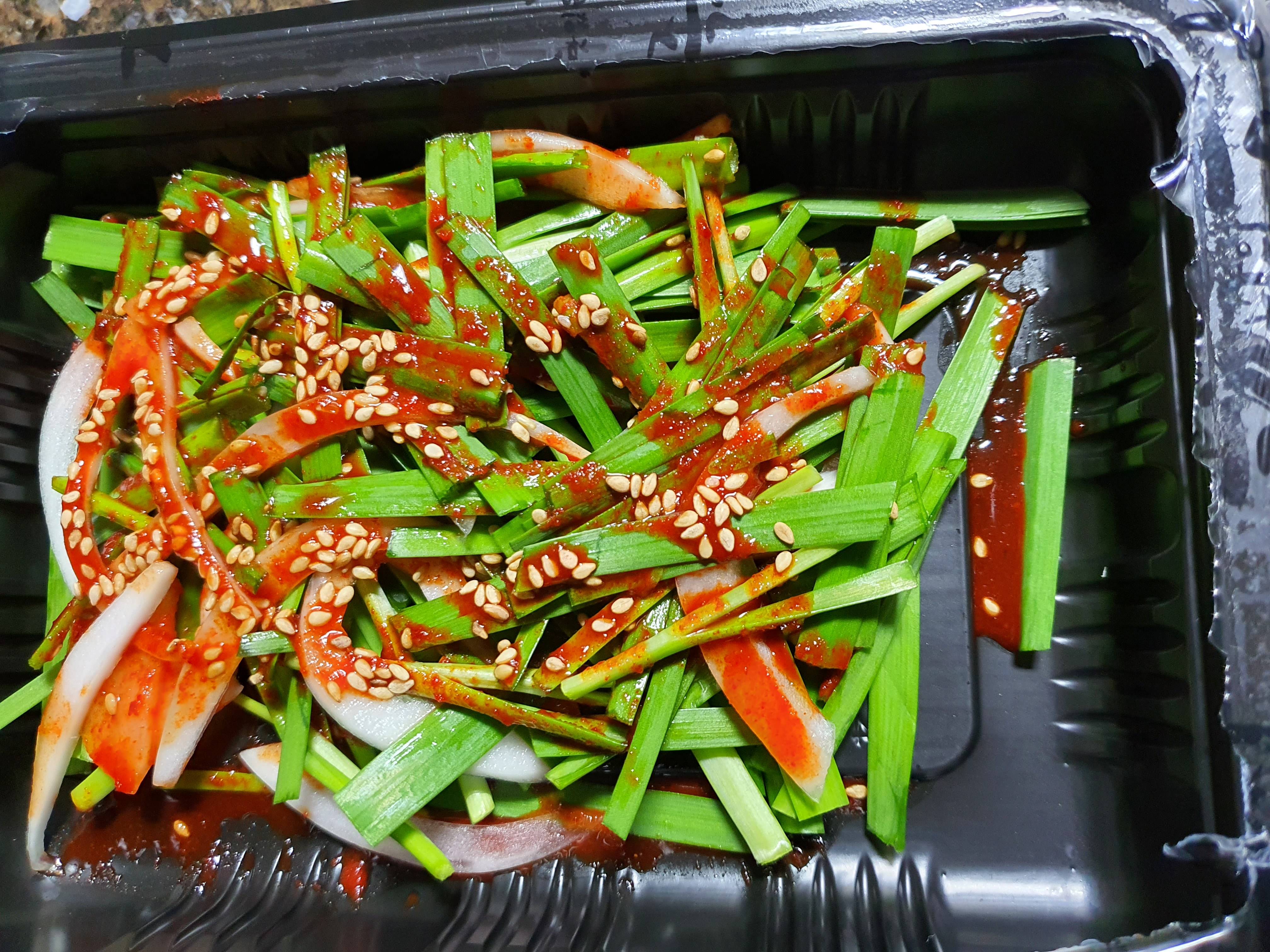 다른 가게랑은 다르게 이곳은 부추를 이렇게 양념에 묻혀서 포장에 추가해서 넣어주더라고요.