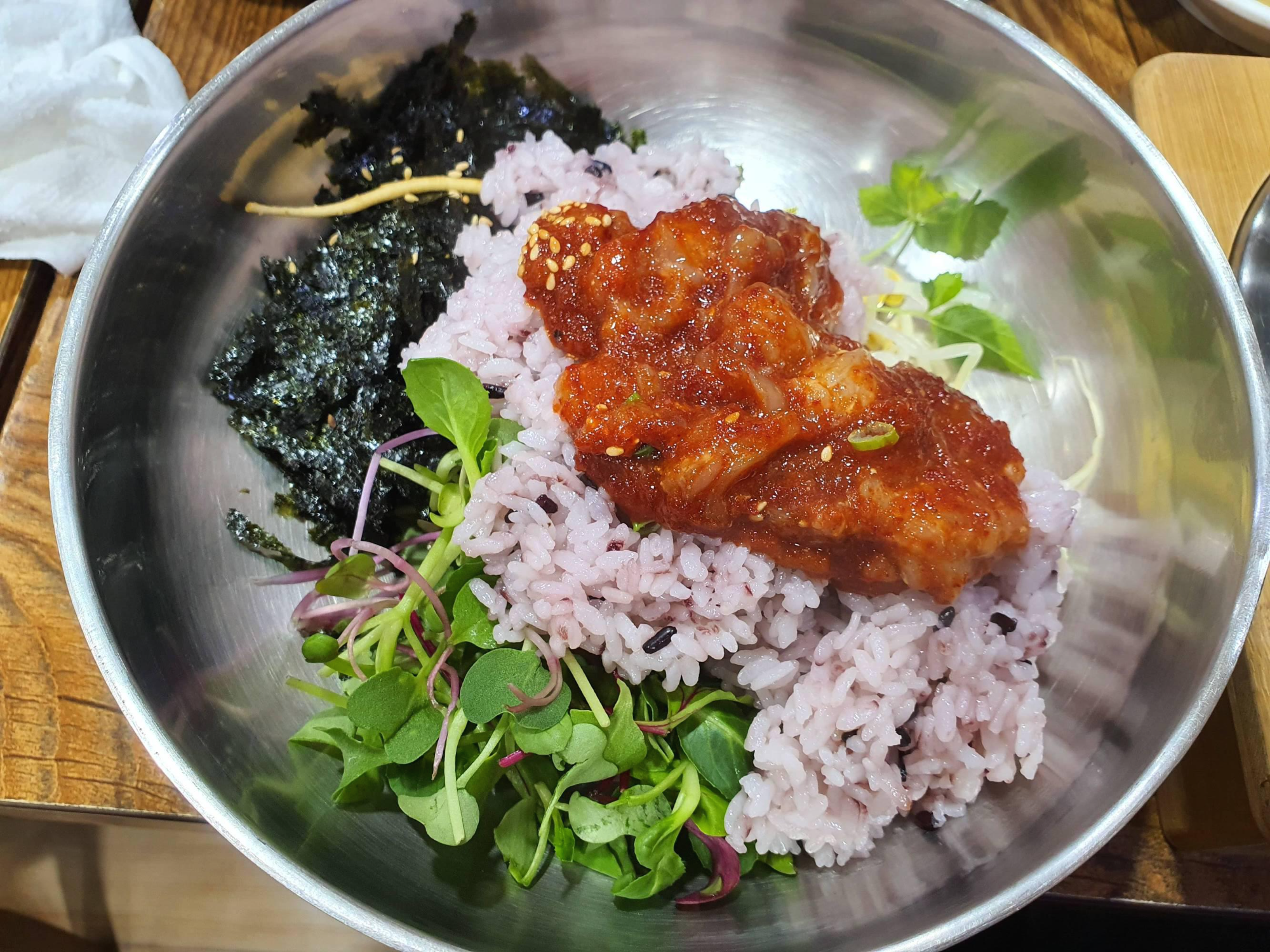 개인적으로 비빔밥 밑 속재료에 김가루가 한가득 있어서 너무 좋았습니다.
