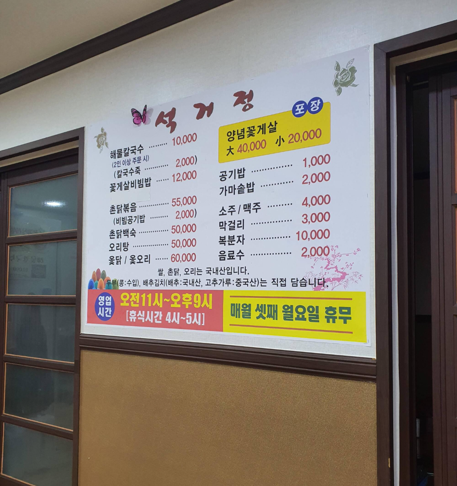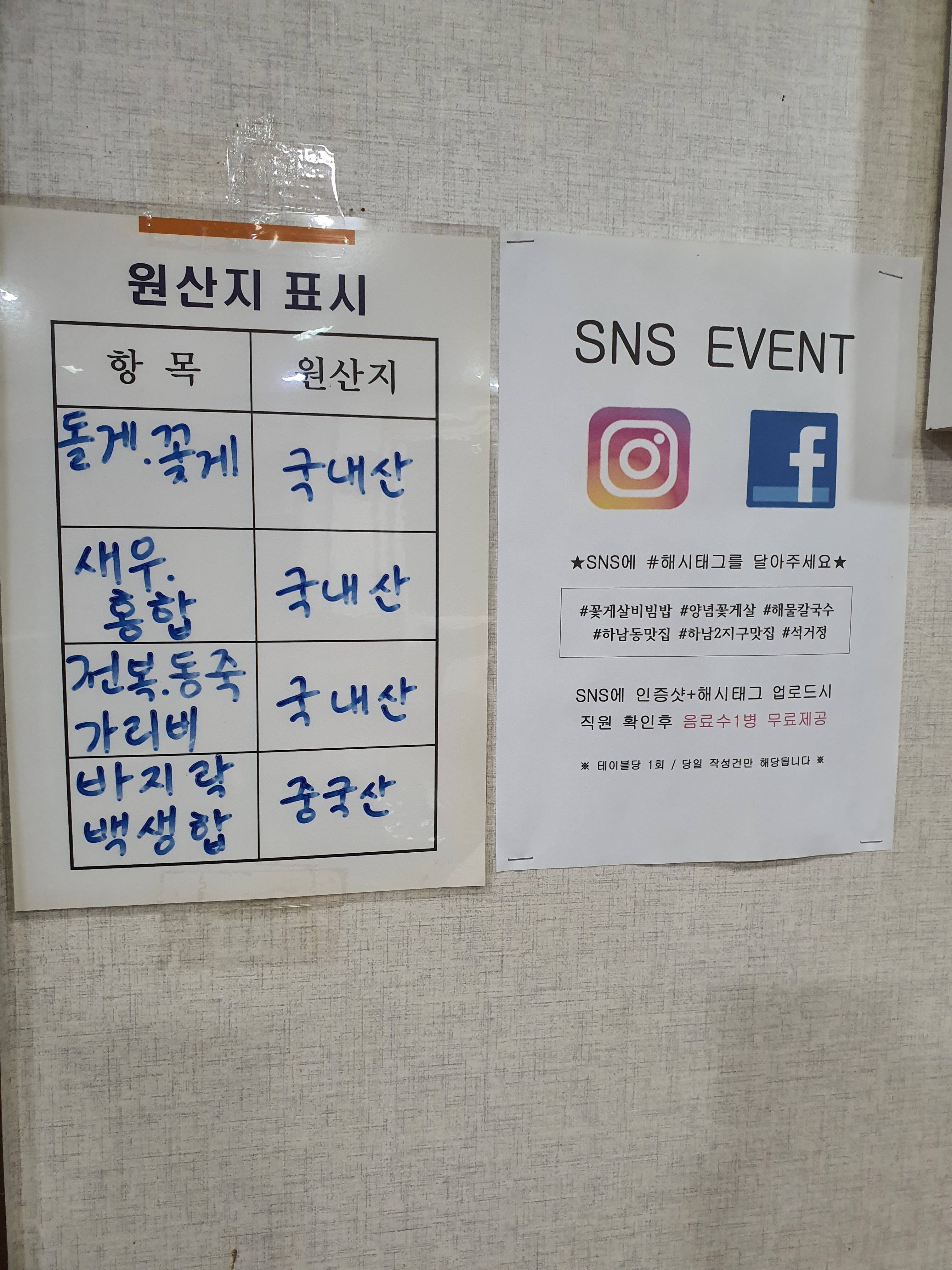 가게 한편에 붙어진 원산지 표시에는 바지락과 백생합을 제외한 나머지는 전부 국내산이었는데요~