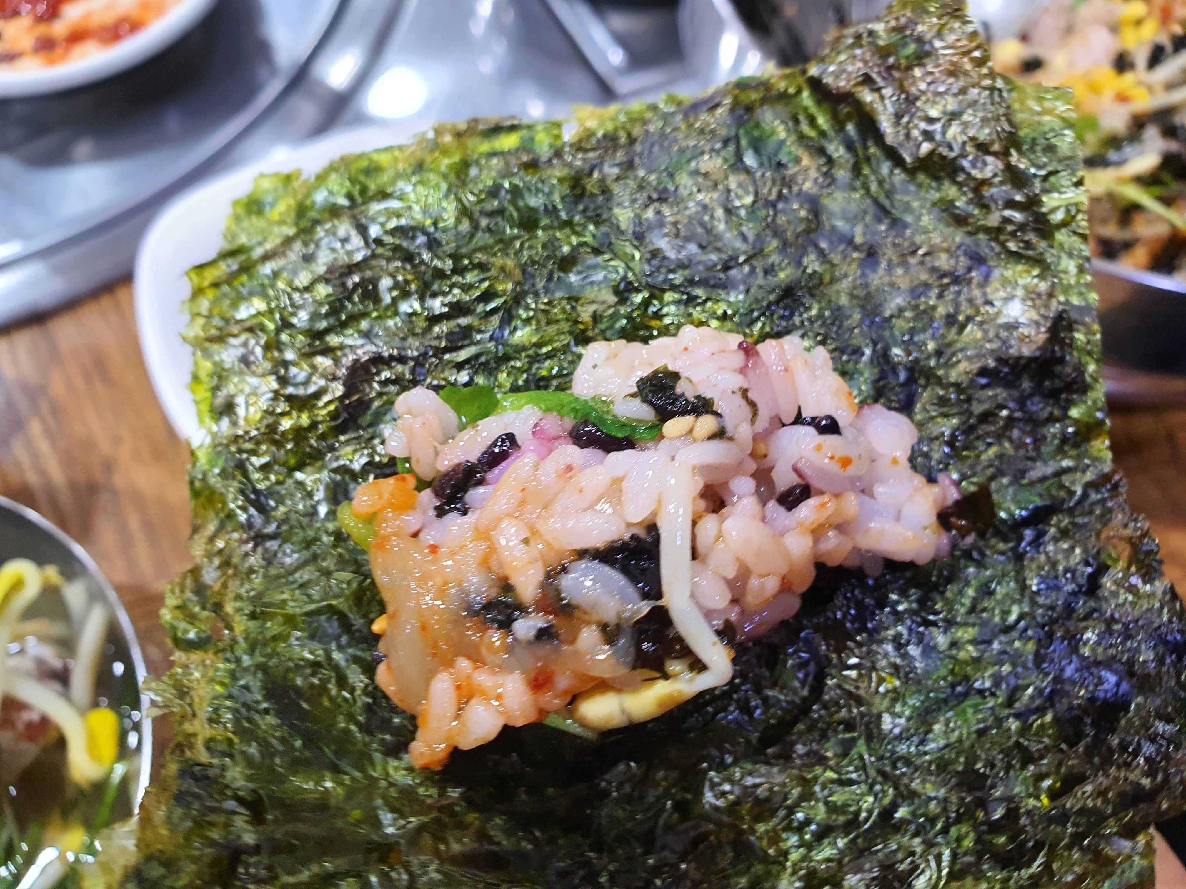 그냥 막 퍼먹어도 너무 맛있지만 이렇게 마른김에 싸 먹는 것 또한 밸런스가 좋습니다.