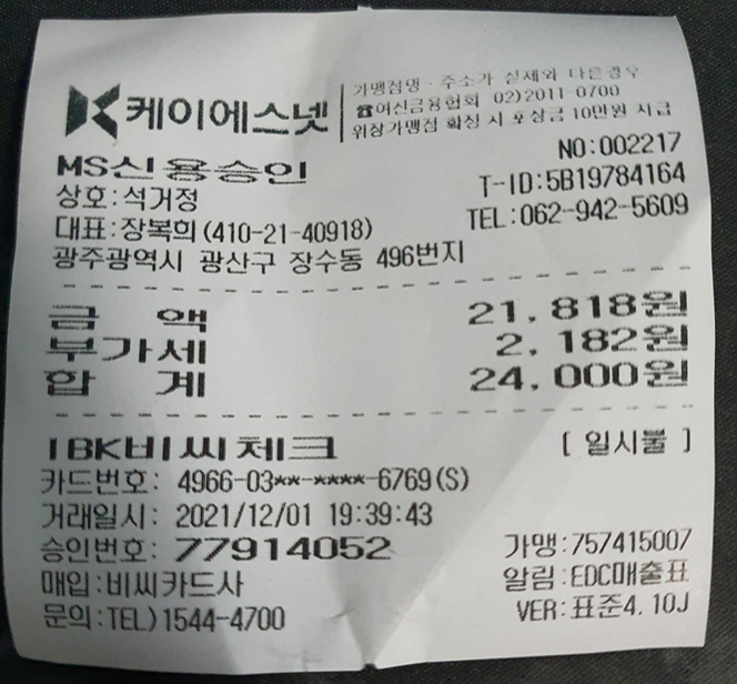 상호 위치 : 광주광역시 광산구 고봉로 258번 길 17-13