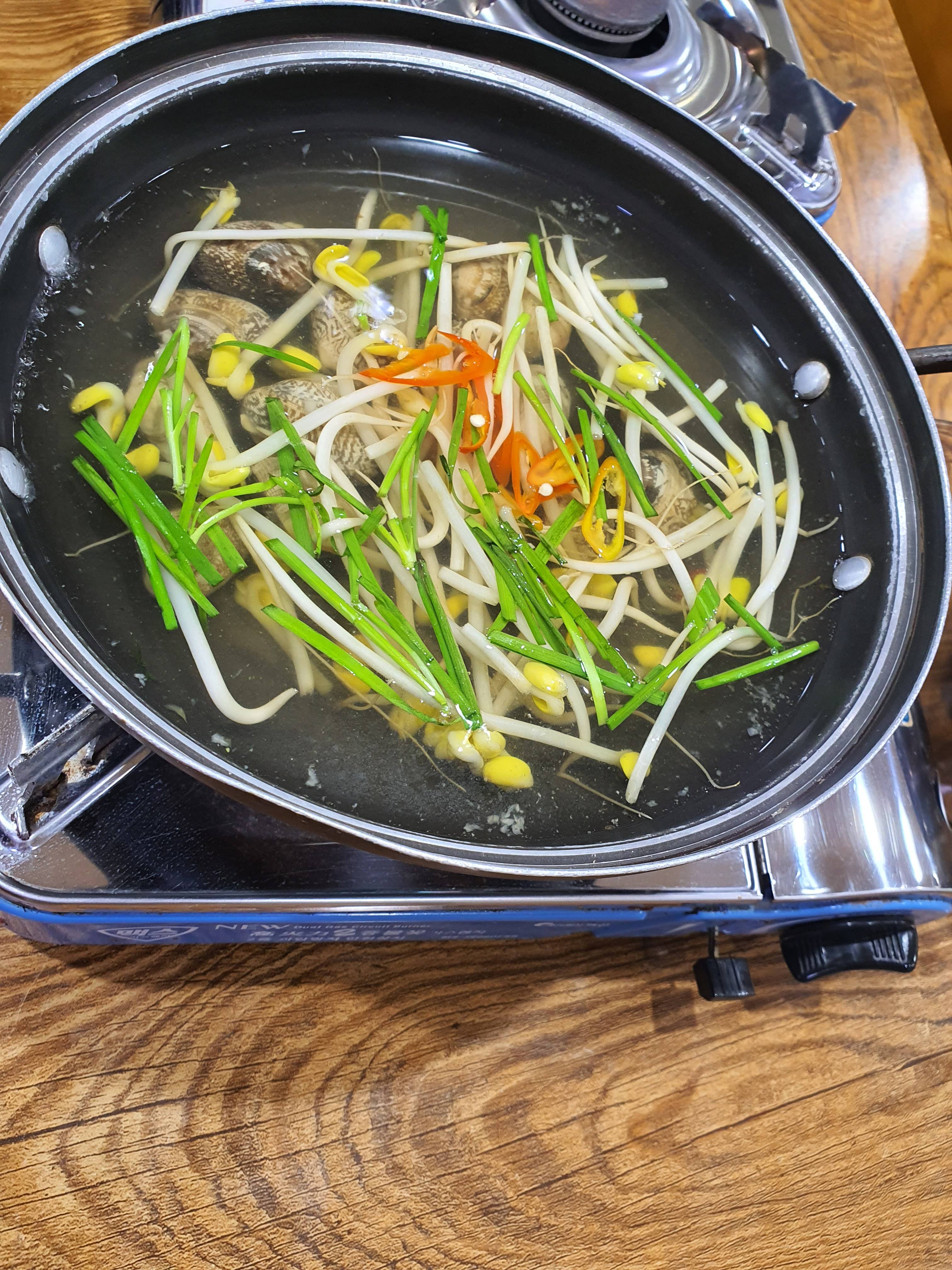바로 먹을 수 있는 건 아니고 스토브에 한번 끓여주면 바지락들이 쩍쩍 입을 벌리는데 그때가 먹을 수 있는 신호를 알려주는 때입니다.