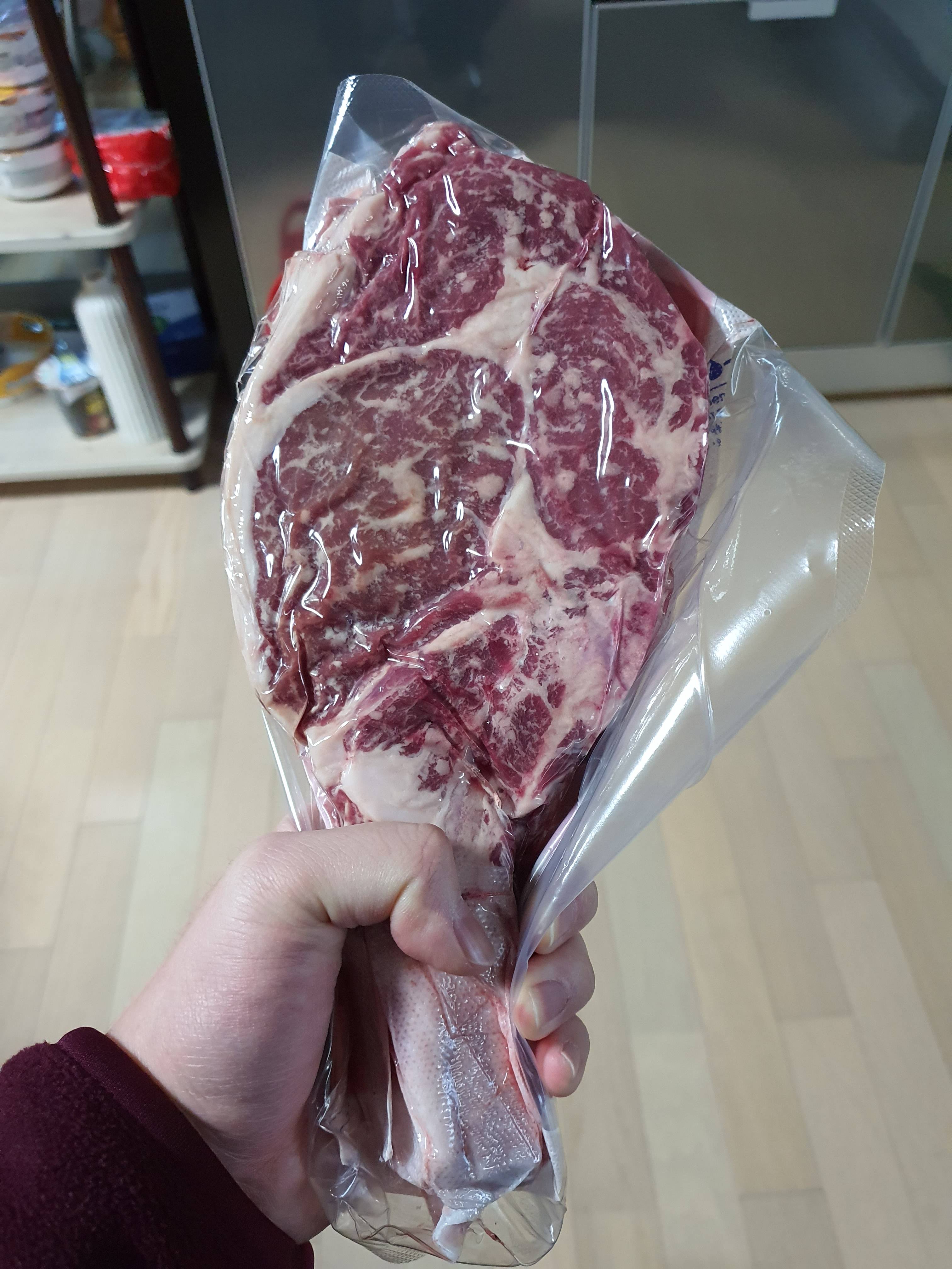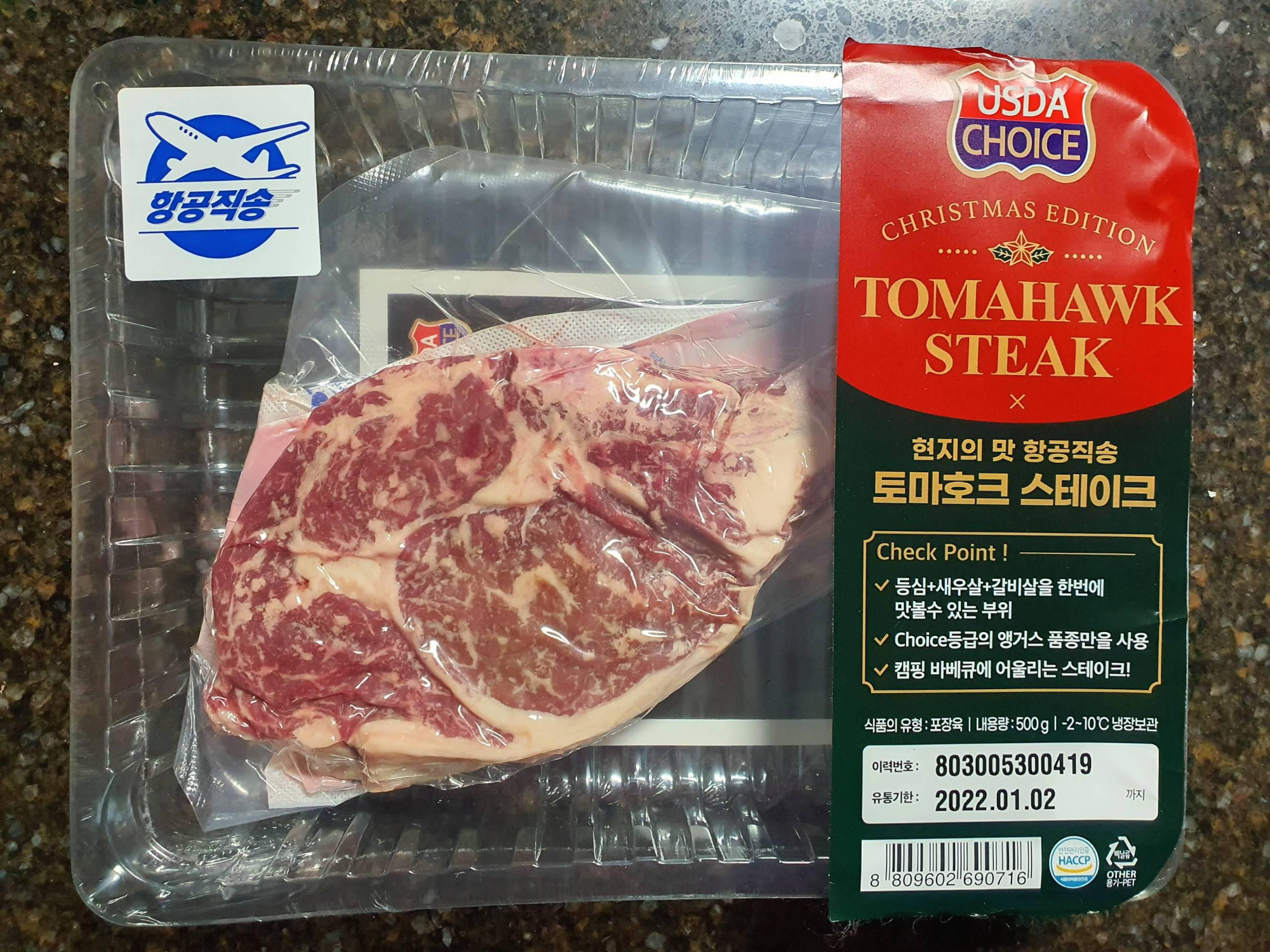 토마호크가 뼈를 포함한 무게가 500그램인데 크리스마스이브 당일날 홈플러스에서 구매 고객에게 1만 원씩 할인을 하고 있어서 44,990원에 구매를 했었습니다.