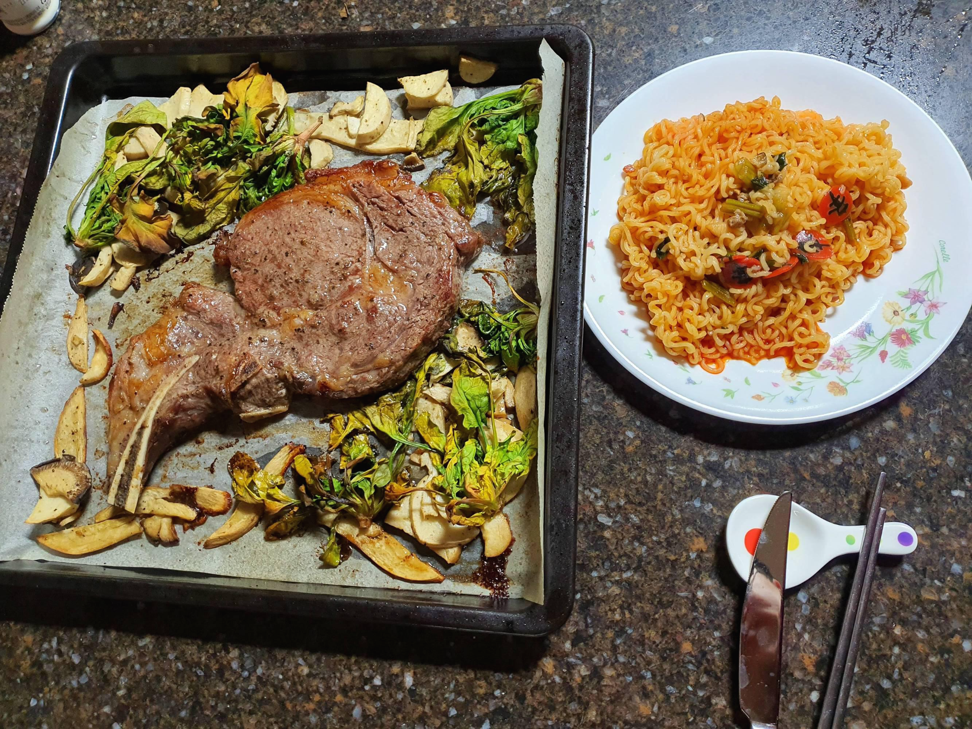 그냥 고기만 먹으면 심심할까 봐 신라면 볶음면도 한번 곁들여 줬습니다 ^^.