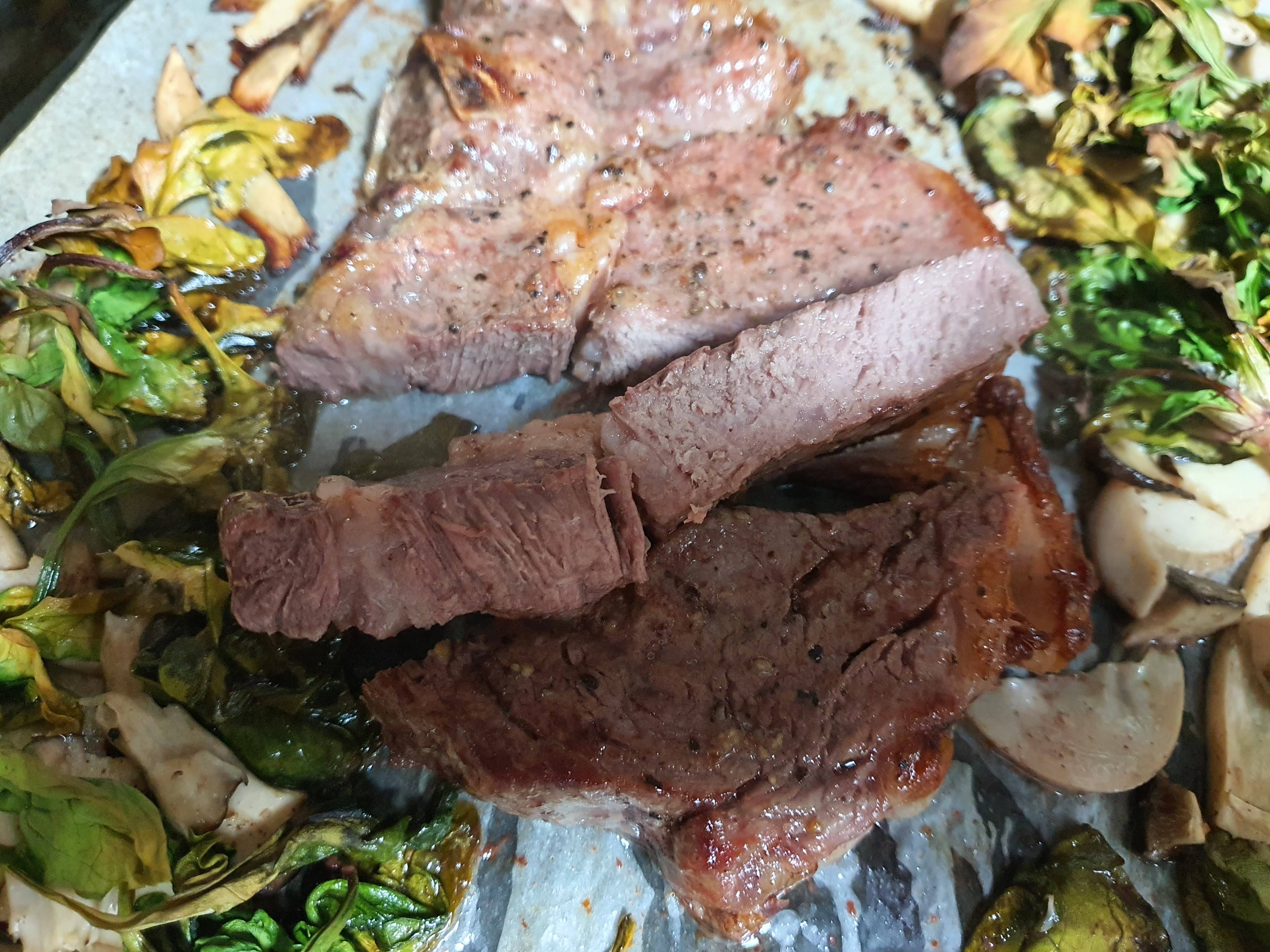 고기 굽기 웰던으로 너무 잘 조리가 되었고 육즙도 완벽 버섯도 잘 되었습니다.