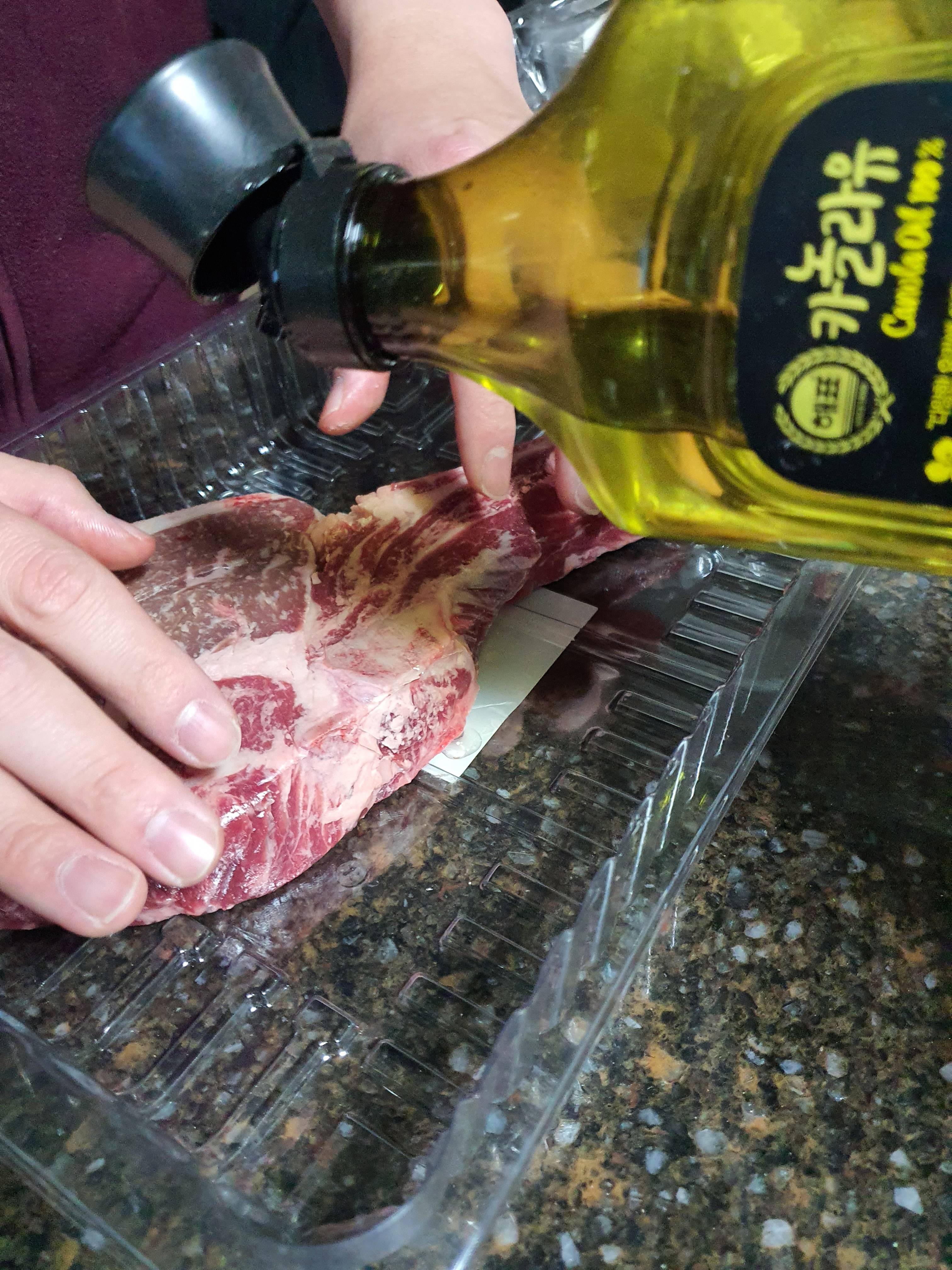저는 이 토마호크를 오븐에 넣고 조리를 할 예정이라서 어짜피 수분은 안에 갇히게 되므로 그대로 조리를 진행을 합니다.