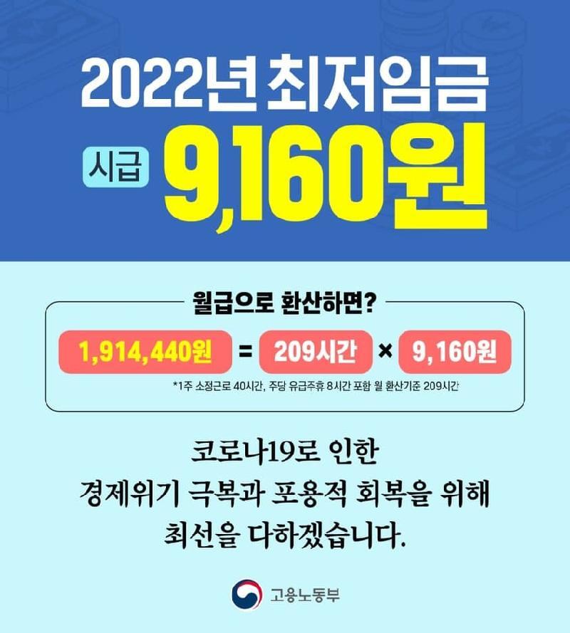 2022년의 최저 시급은 얼마로 책정되었을까?