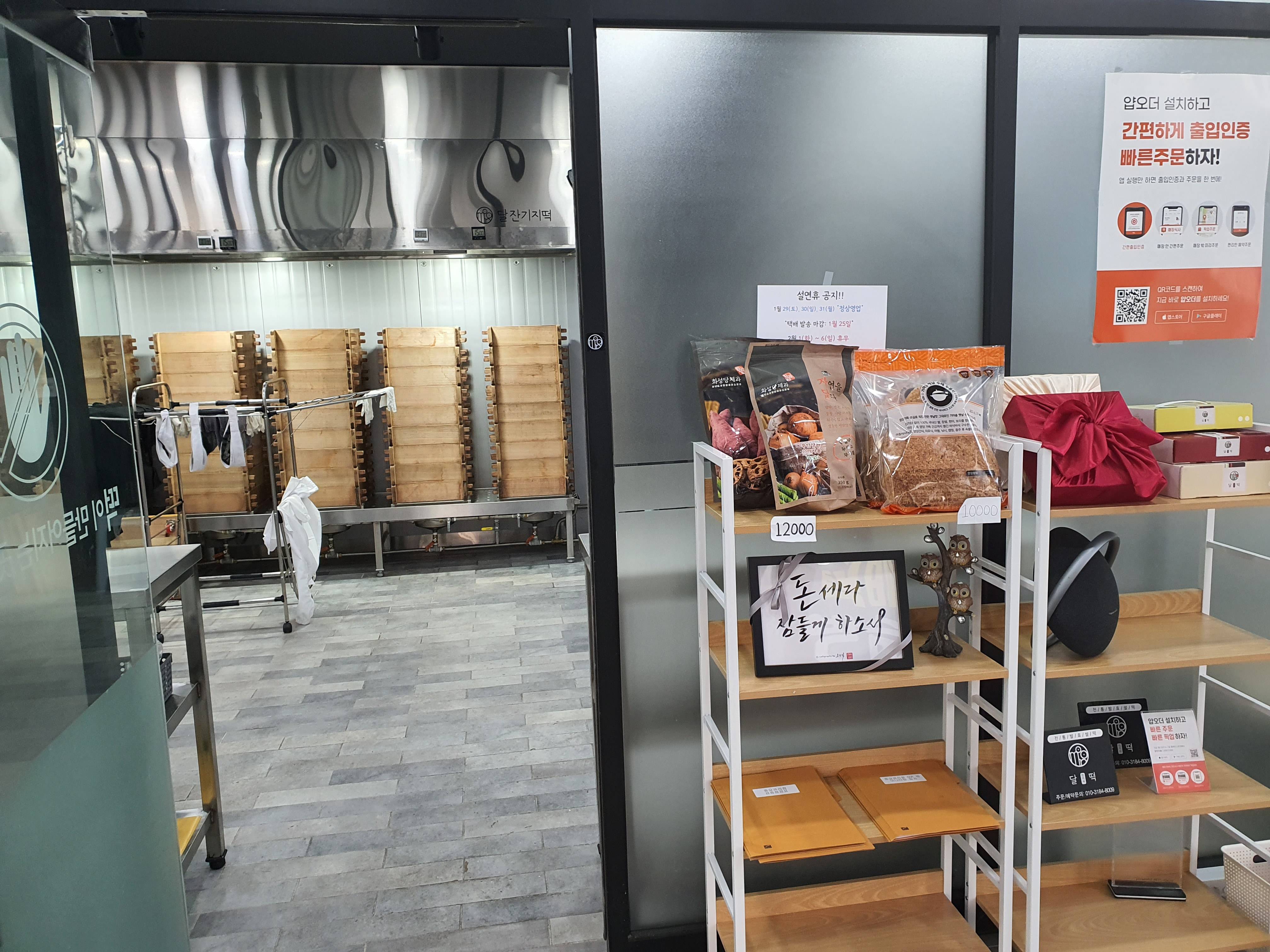 가게 정문을 열자마자 바로 앞에 저렇게 빵을 신시간으로 찌는 부엌이 보이는데 궁금해서 안을 구경하고는 싶었으나 코로나도 있고 괜히 남의 사업장에 기웃거리는 건 실례가 되는 듯해서 그냥 참았네요 ㅋ