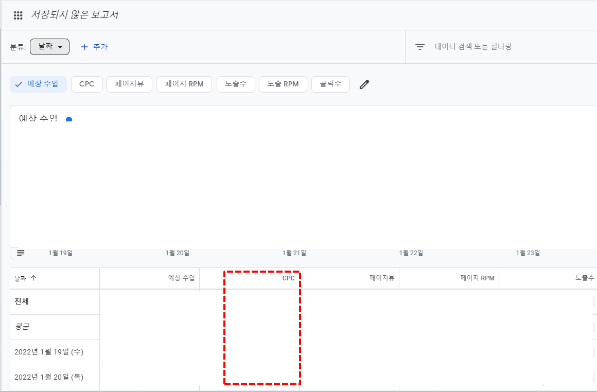 저는 창을 일부 가려 놨습니다만, 적용을 누르면 위와 같이 일별 CPC 단가가 보이는