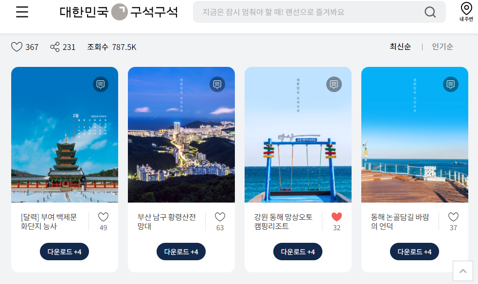 대한민국의 아름다운 모습이 담긴 배경화면 다운로드 사이트 - 대한민국 구석구석