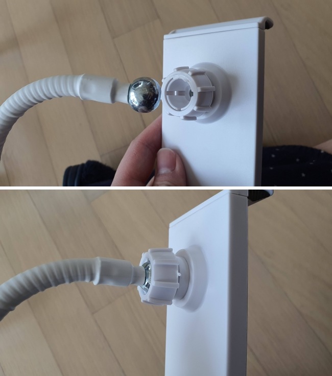 볼 조인트를 헤드 부분의 나사를 풀어서 결합을 시켜준뒤에 나사를 다시 돌려서 잠가주기만 하면 됩니다.