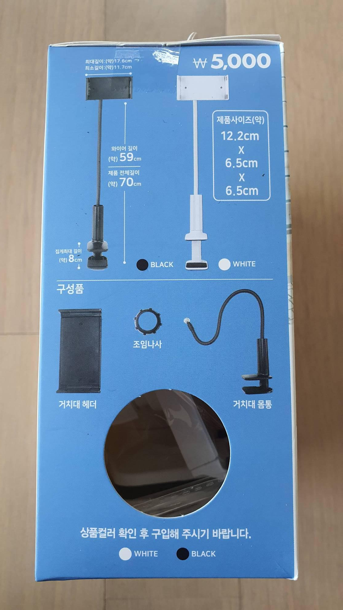 다이소 표 스마트폰 거치대의 주요 스펙이며 하얀색과 검은색의 두 가지 종류가 있습니다.