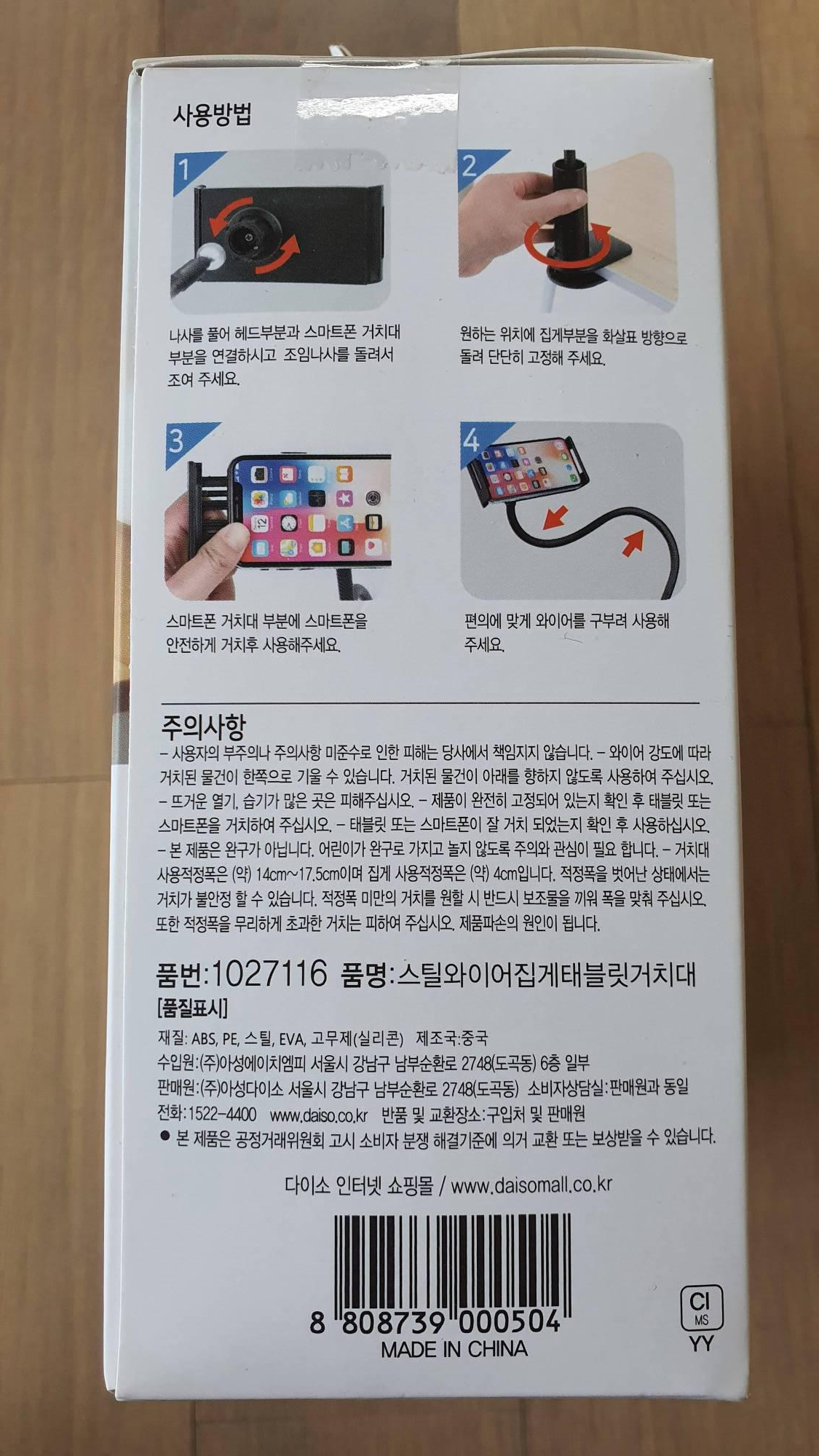 무려 다이소에서라면 최고급 금액으로 통하는 5천 원이라는 거액으로 구매한 스마트폰 거치대입니다.