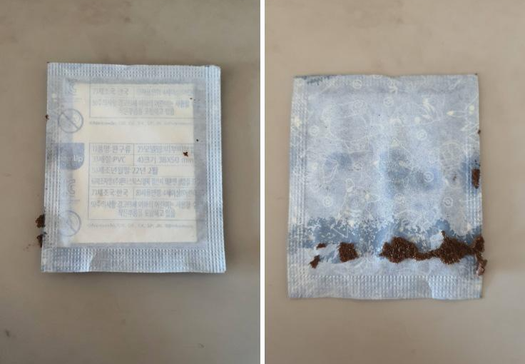 이번에는 나름 신경을 썼는지 띠부씰을 포장지 안쪽이나 빵 밑에 넣어서 안 보이게끔 처리를 했더군요.