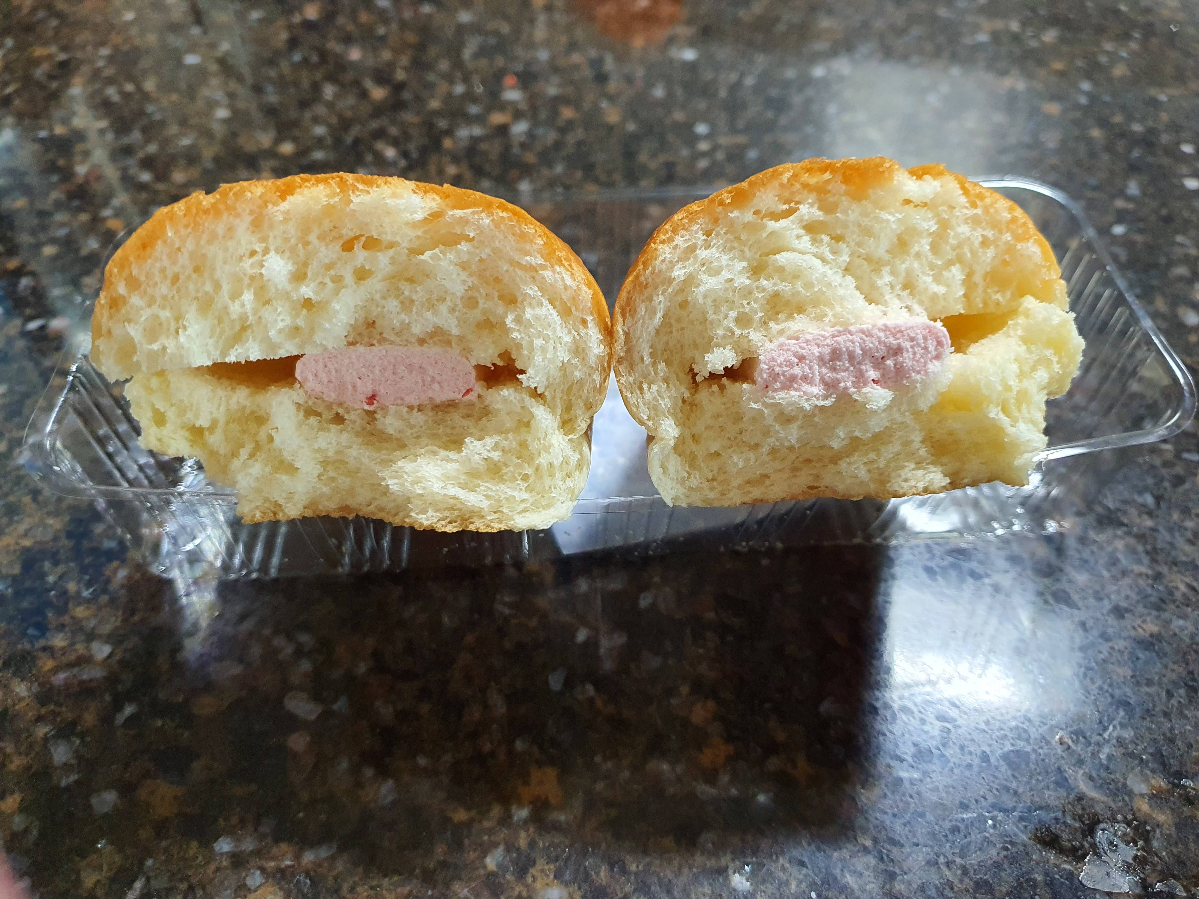 빵속에 과연 얼마나 딸기 크림이 들어 있나 궁금해서 한번 반으로 잘라봤습니다.