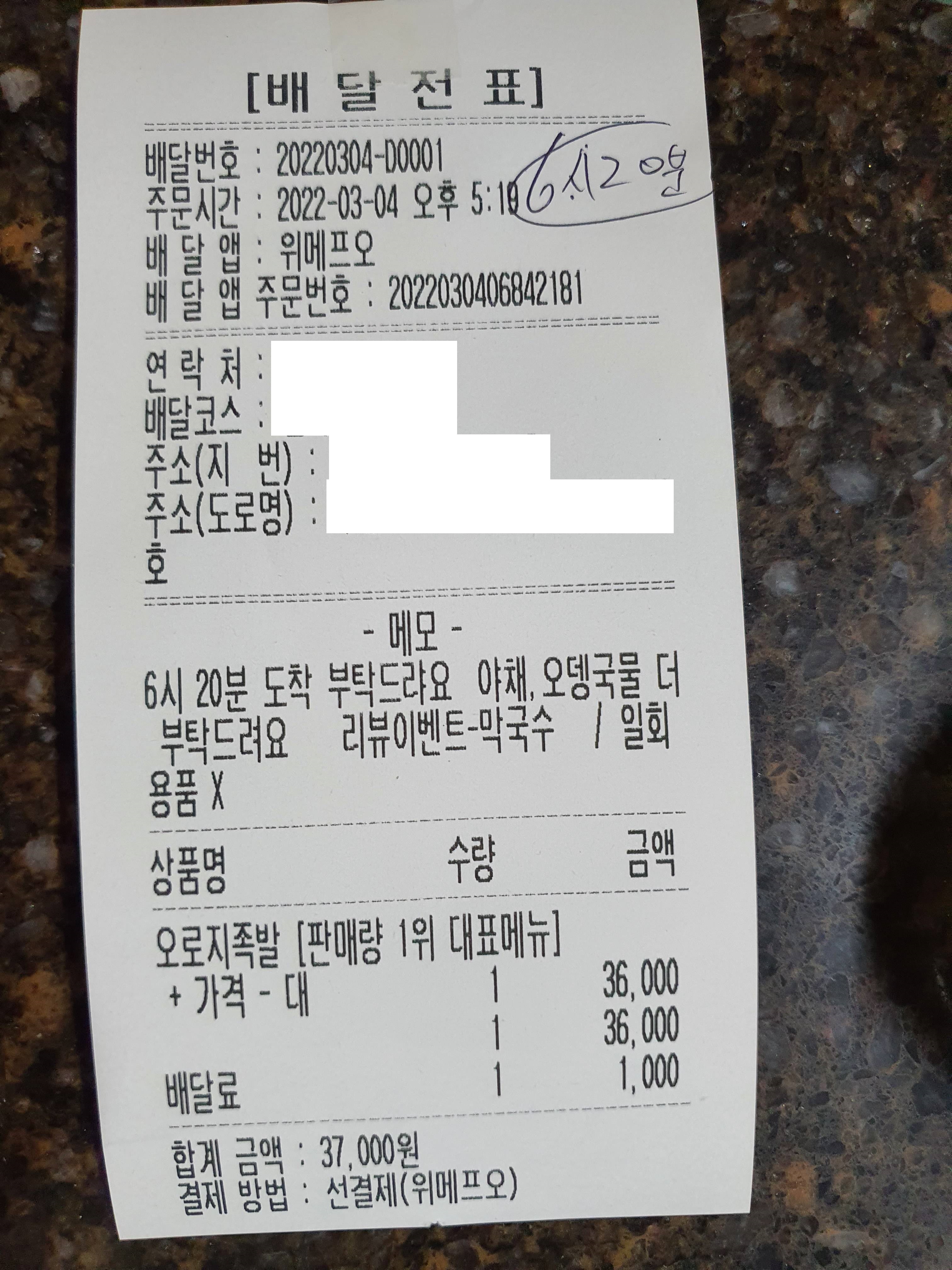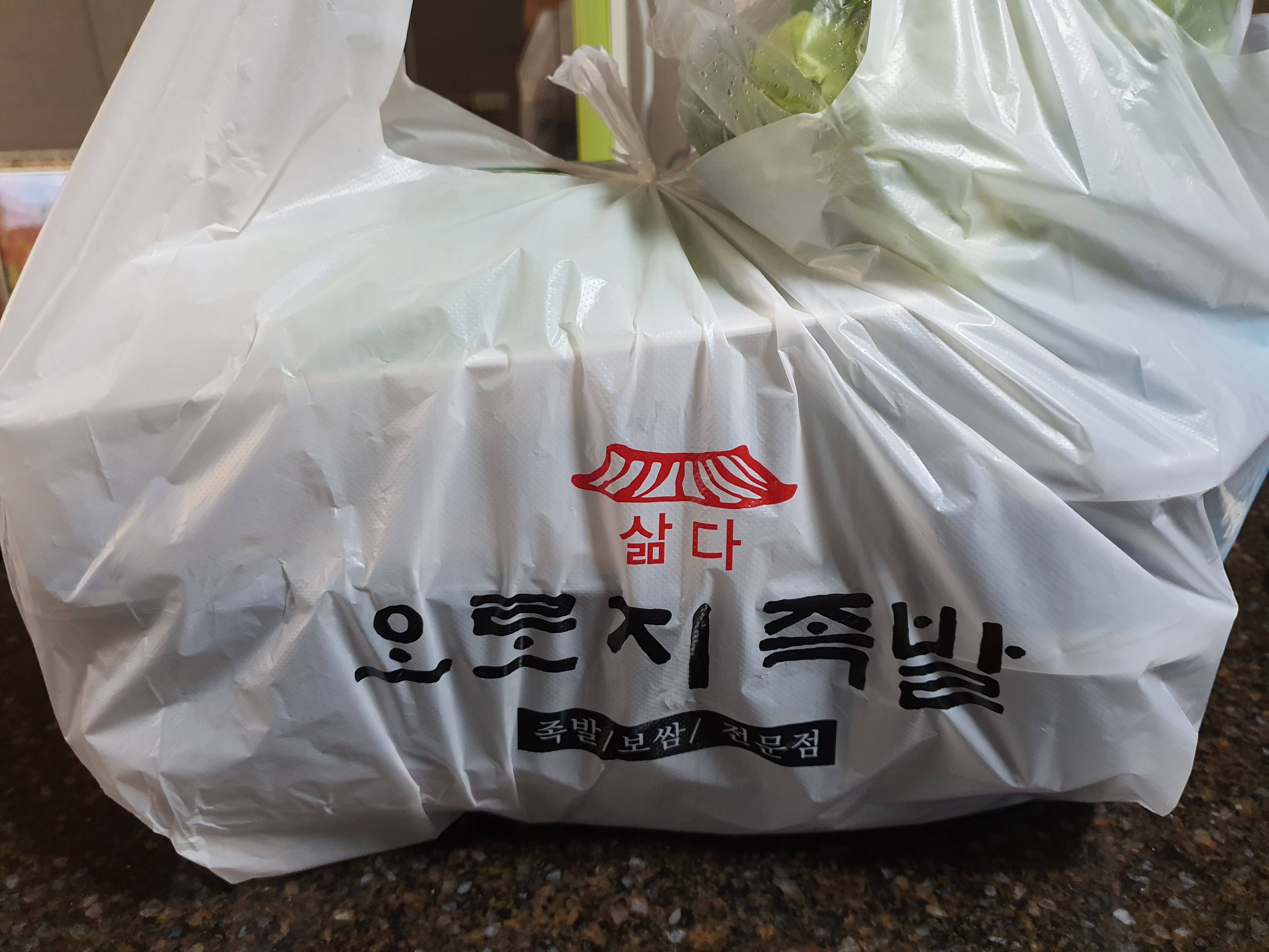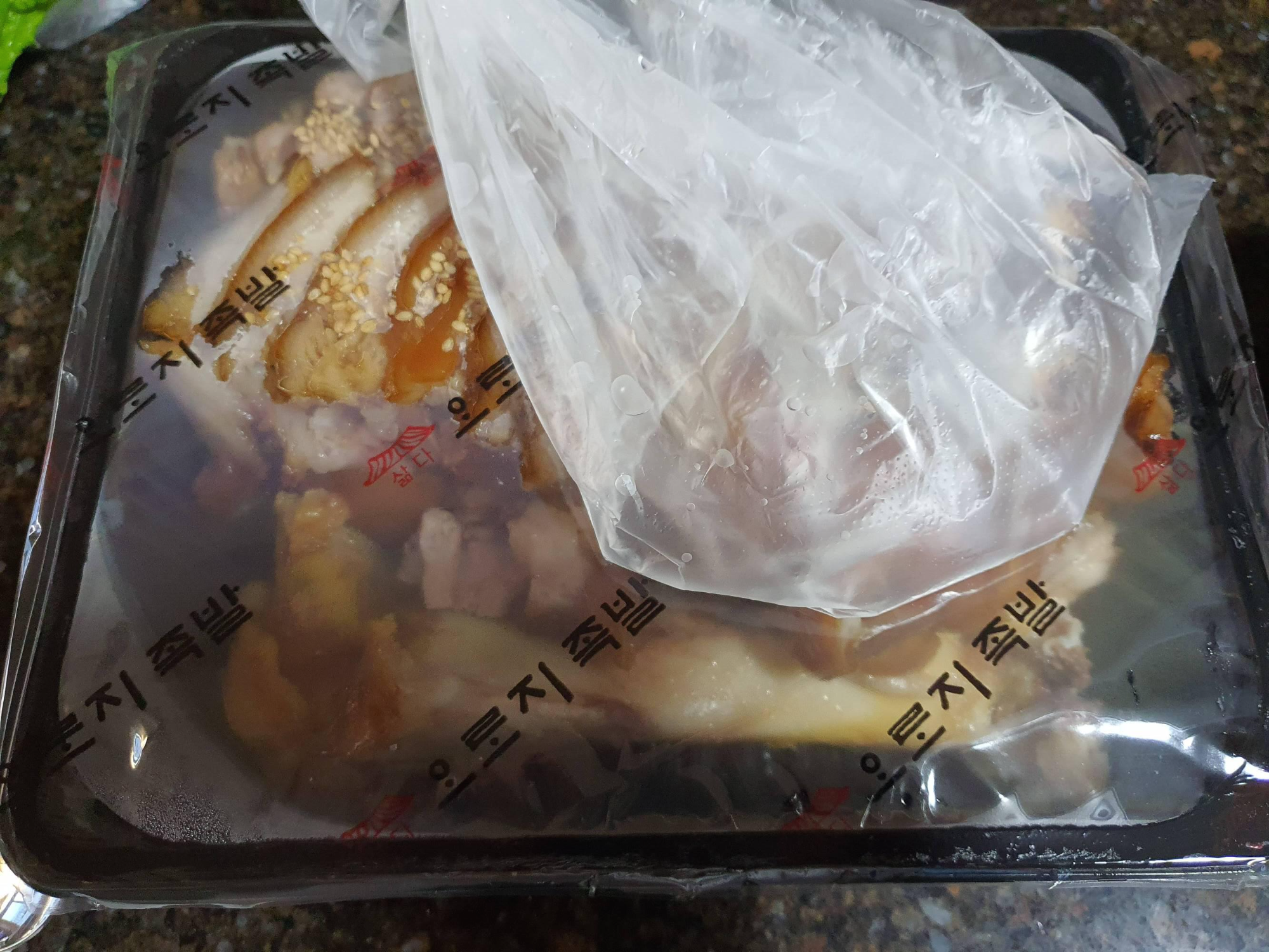 족발 포장팩 위에 따뜻한 물이 담긴 봉지를 올려놓으셔서 저희 집에 도착하고 나서도