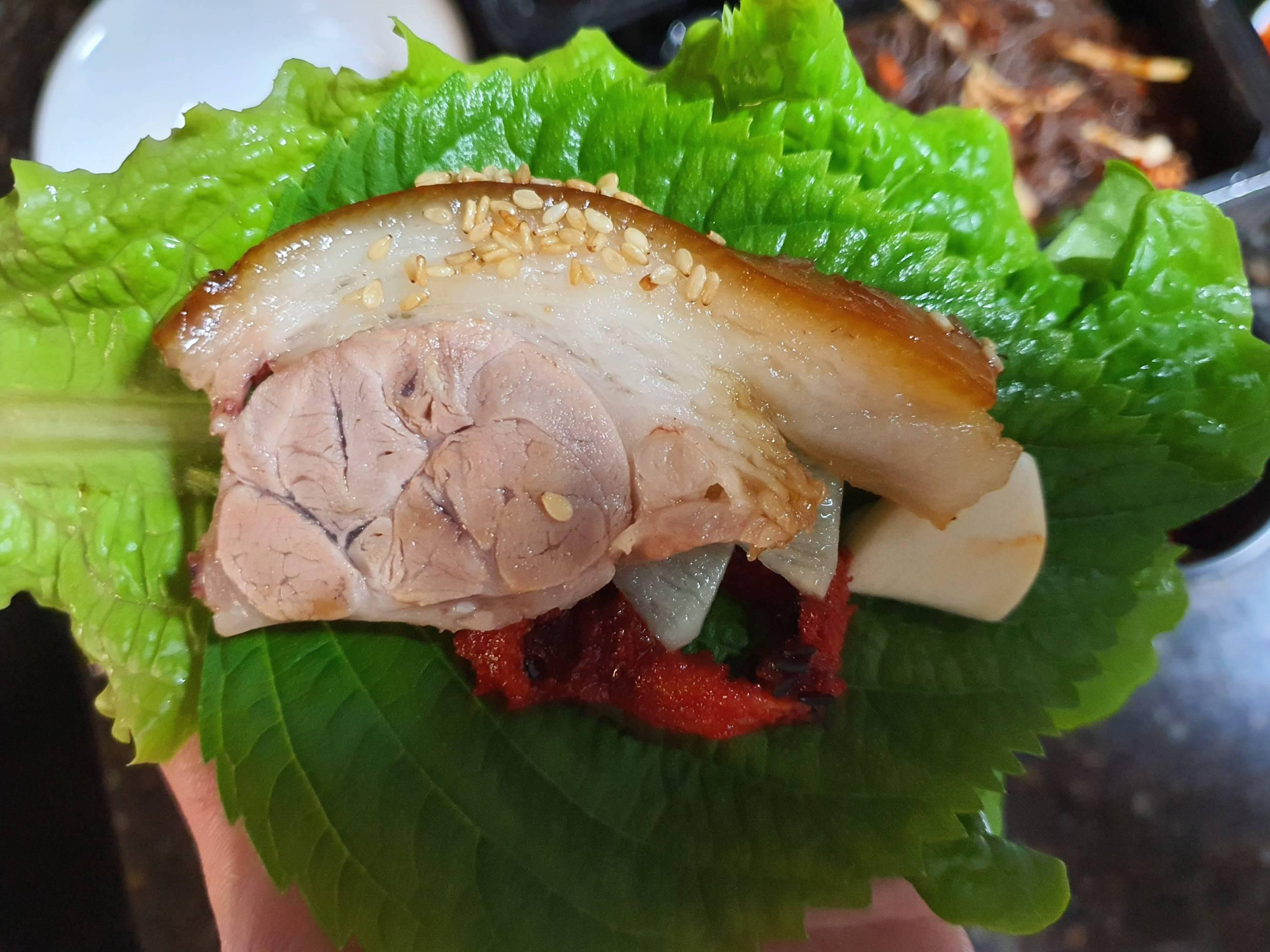 오늘의 삶아 오로지 족발(=삶오로지다족발)의 맛있는 한 점 쌈입니다.