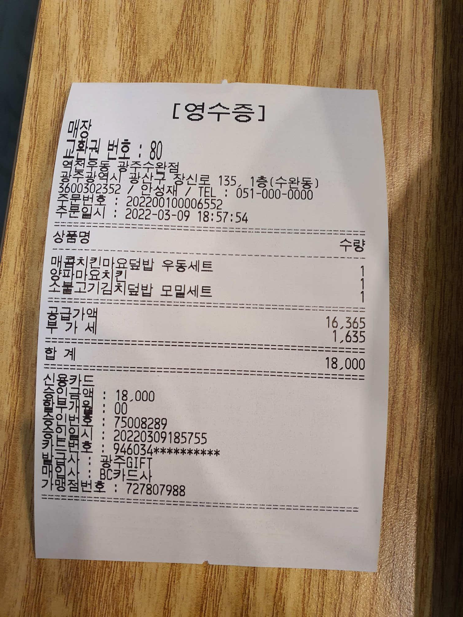 상호명 : 역전우동0410 광주수완점