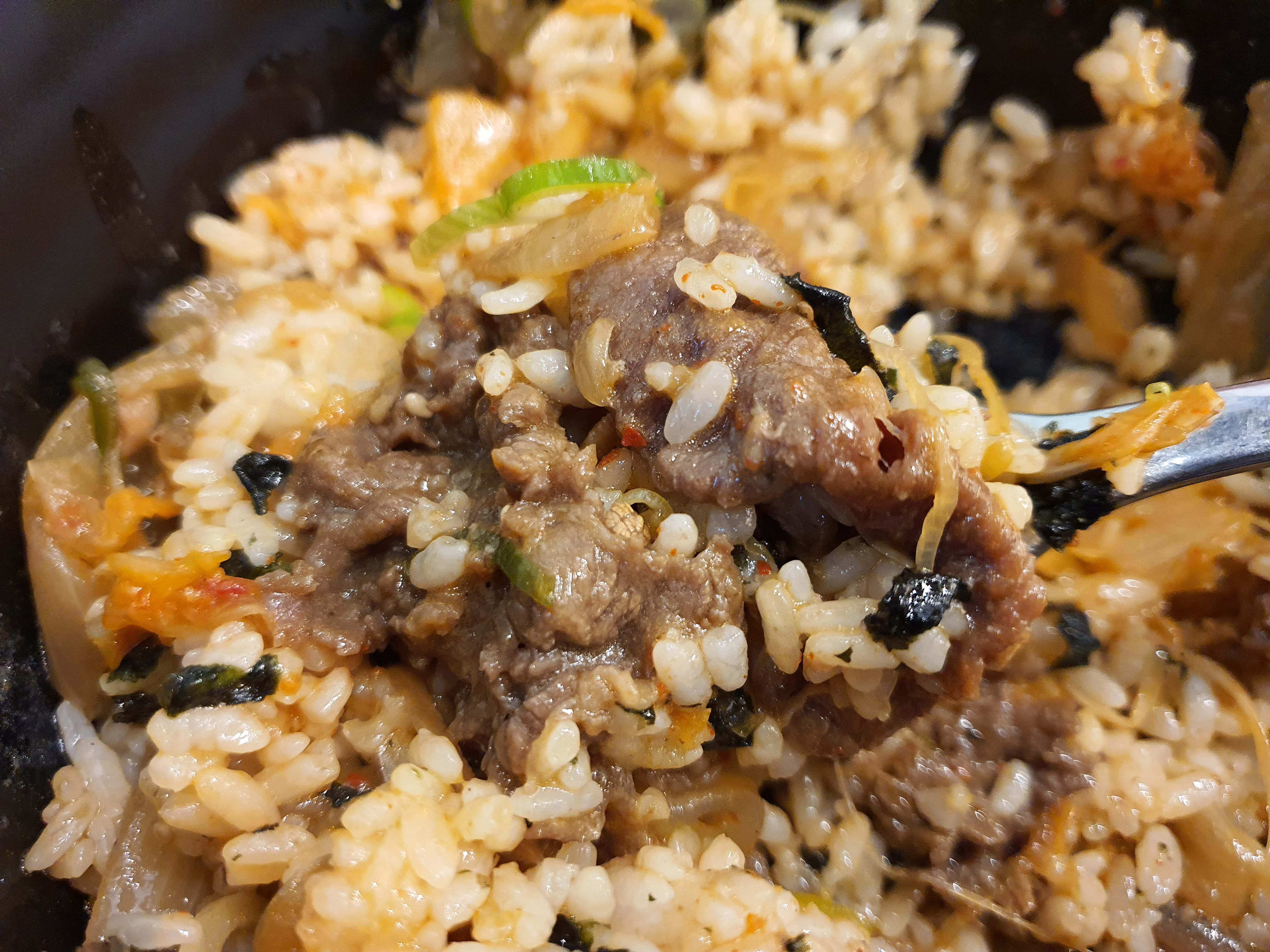 소불고기 김치덮밥은 받자마자 밥이 따뜻할 때 후다닥 비벼줬습니다.