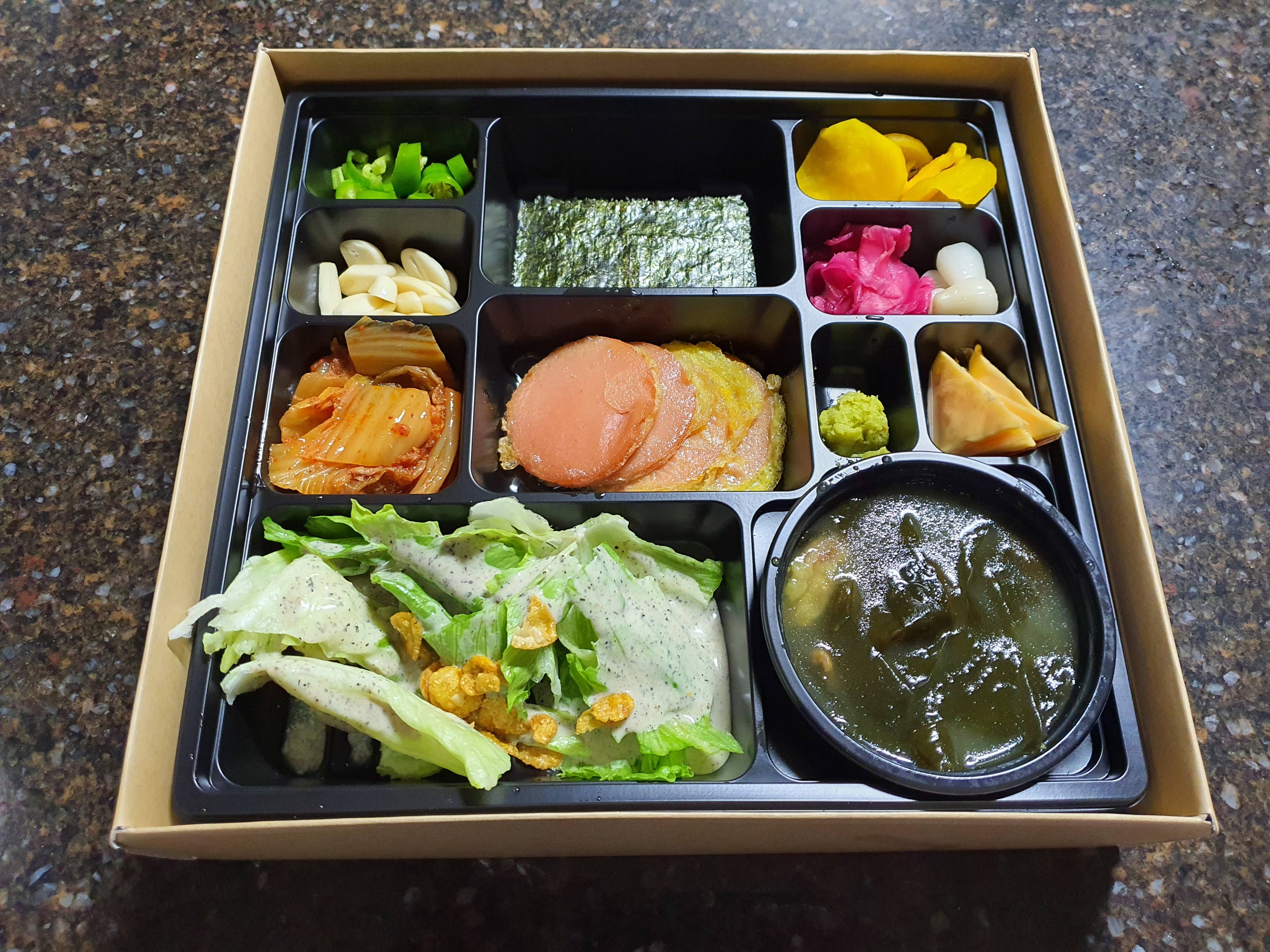 공갈소세지는 개인적으로 안 좋아하는 거라서 그것만 빼면 트레이에 알찬 구성으로 담겨 있다고 봐도