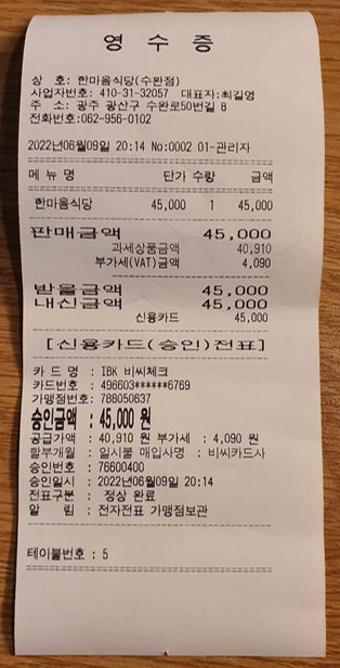 가격은 방문 포장이어도 에누리 없는 45,000원입니다.