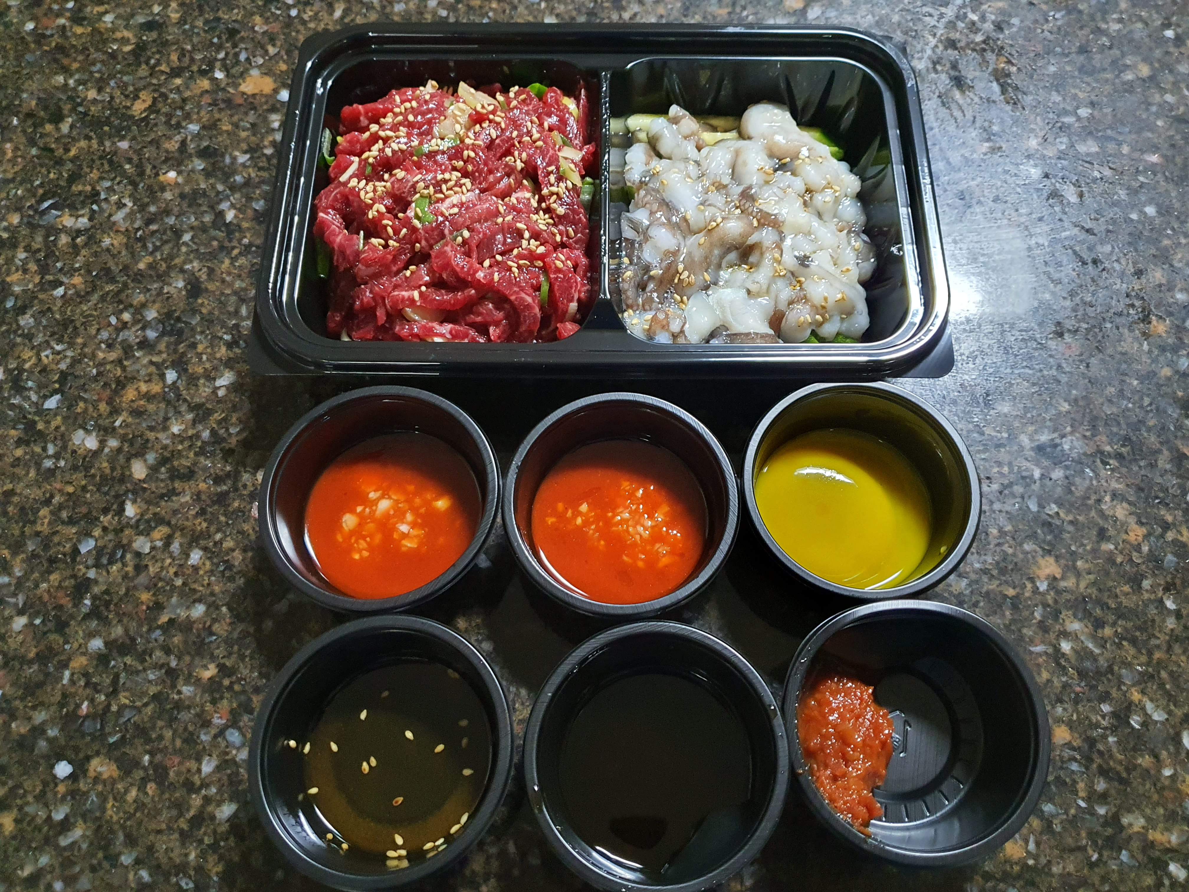 제가 포장해 온 메뉴는 한우낙지탕탕이(깔끔육회 200g + 낙지 1마리)입니다.