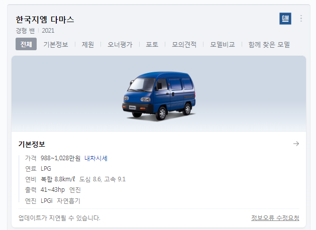 한때 서민의 발이라고 불렸던 다마스라는 차종을 아시는지요?