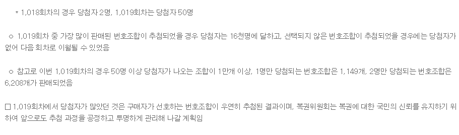 1등 당첨자가 무려 50명이나 나온 1019회차 로또