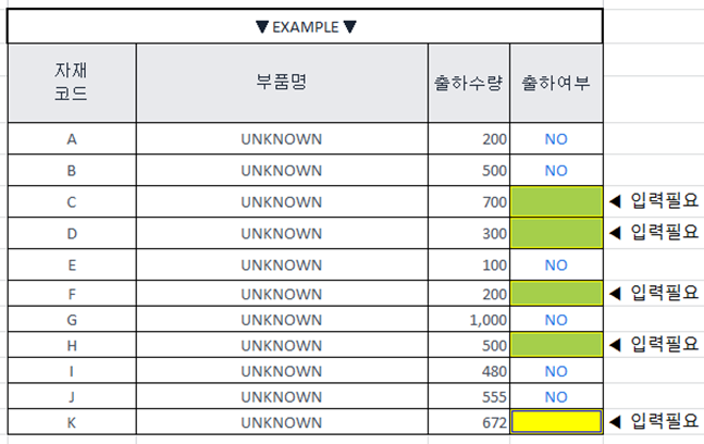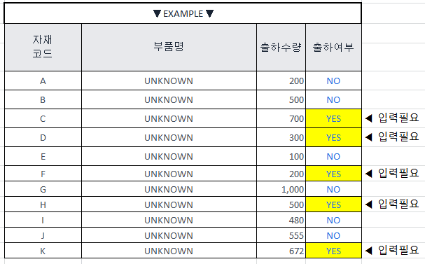 저는 노란색 빈칸을 "YES"로 채울 예정이며, 별 차이는 없겠지만 해당 액셀의 버전은 2010 버전입니다.