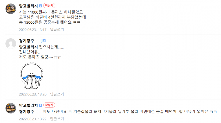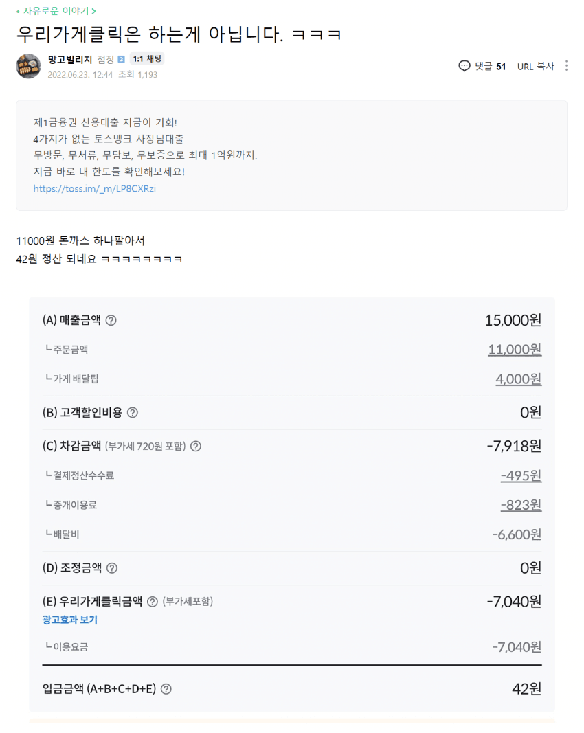 11000원 돈까스 팔고 42원 남긴 사장님, 펌글