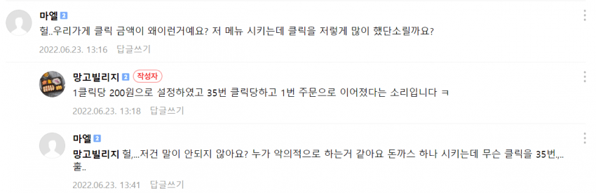 2,600원인데 "E" 항목의 "우리가게클릭금액" 이라는게 사실상 마진을 다 가져간 셈인데 과연 저건 뭘까요?
