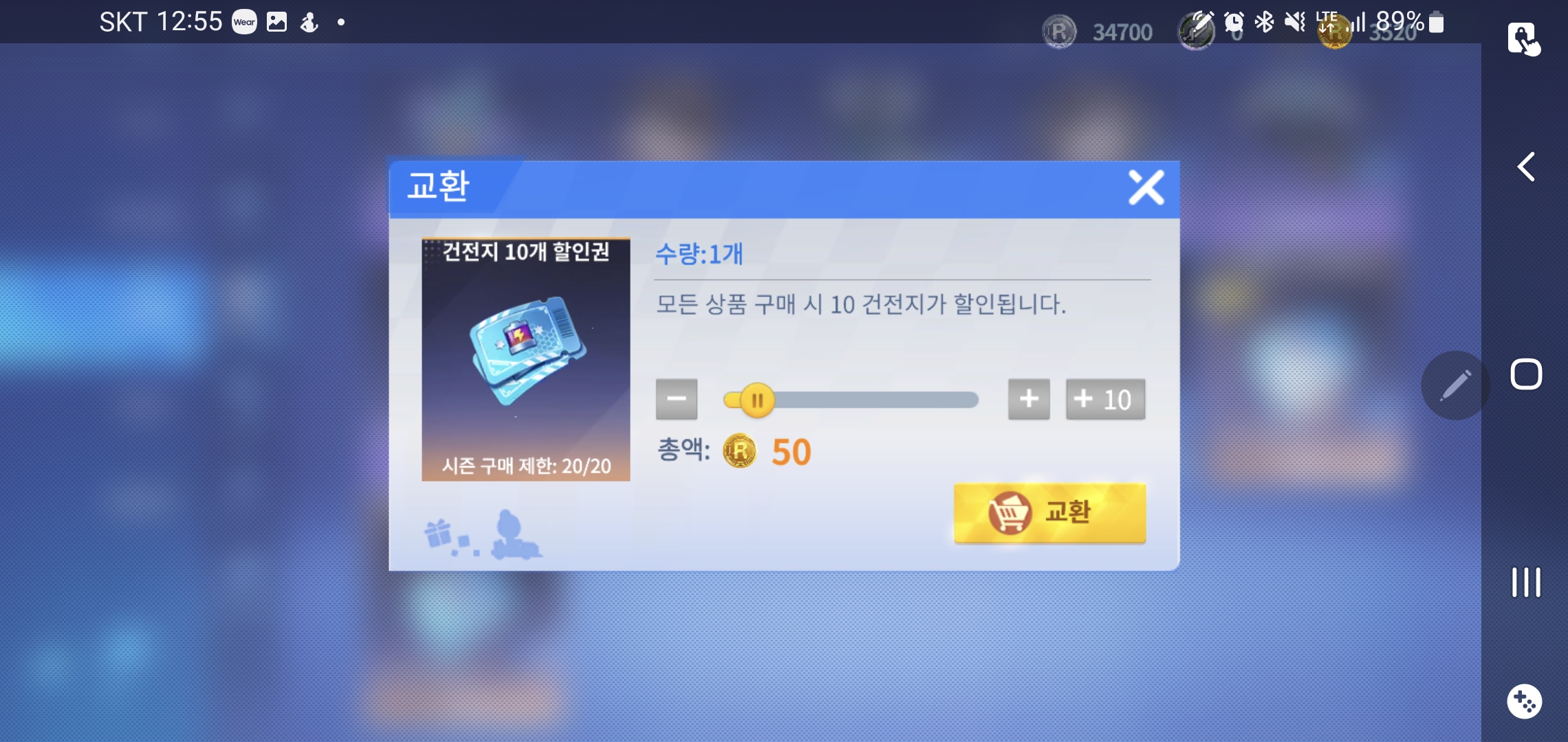 유료재화를 구매를 할 때 건전지 할인권은 중복으로 겹치는게 가능해서