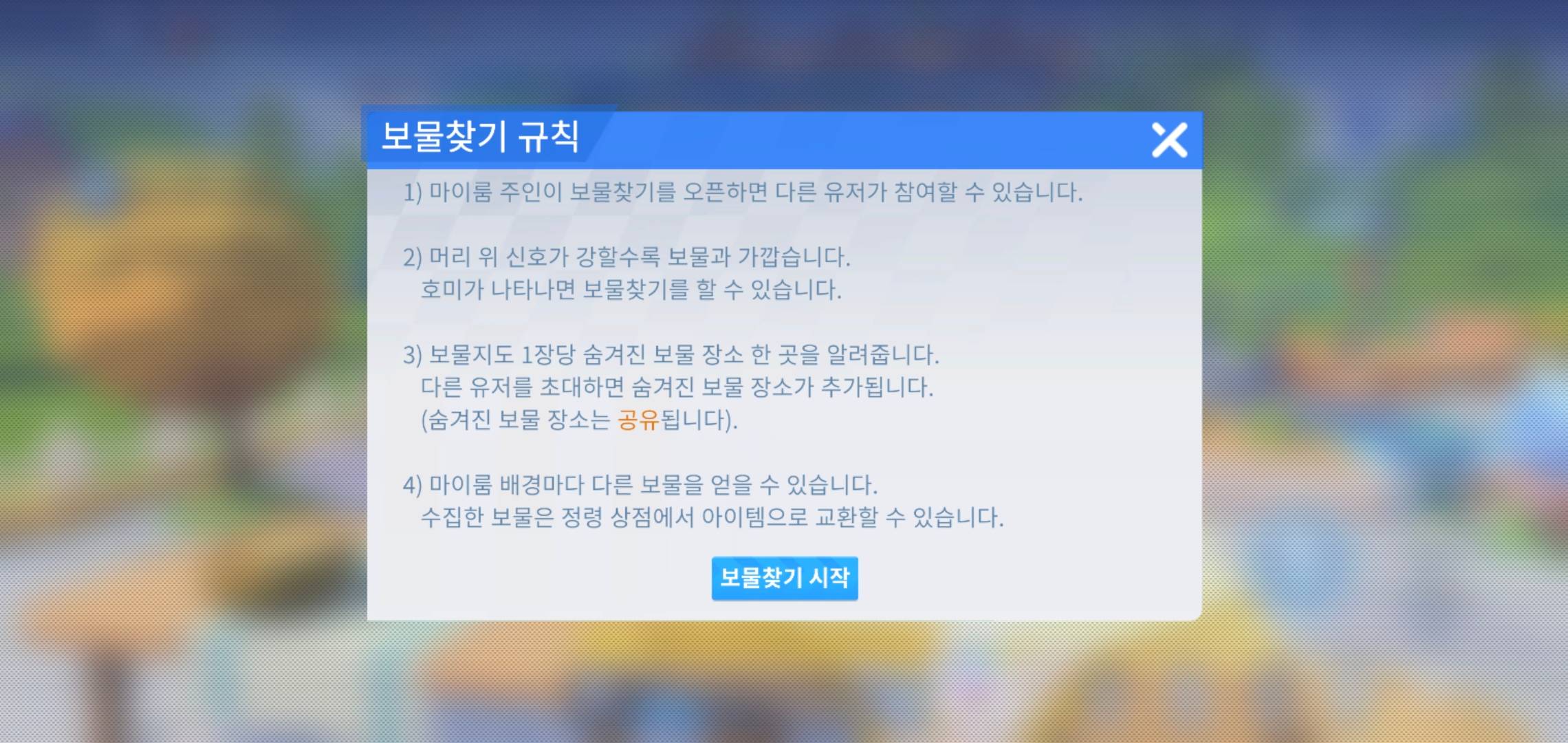 본인의 마이룸을 배경으로 보물 찾기를 개최할 수 있게 됩니다.