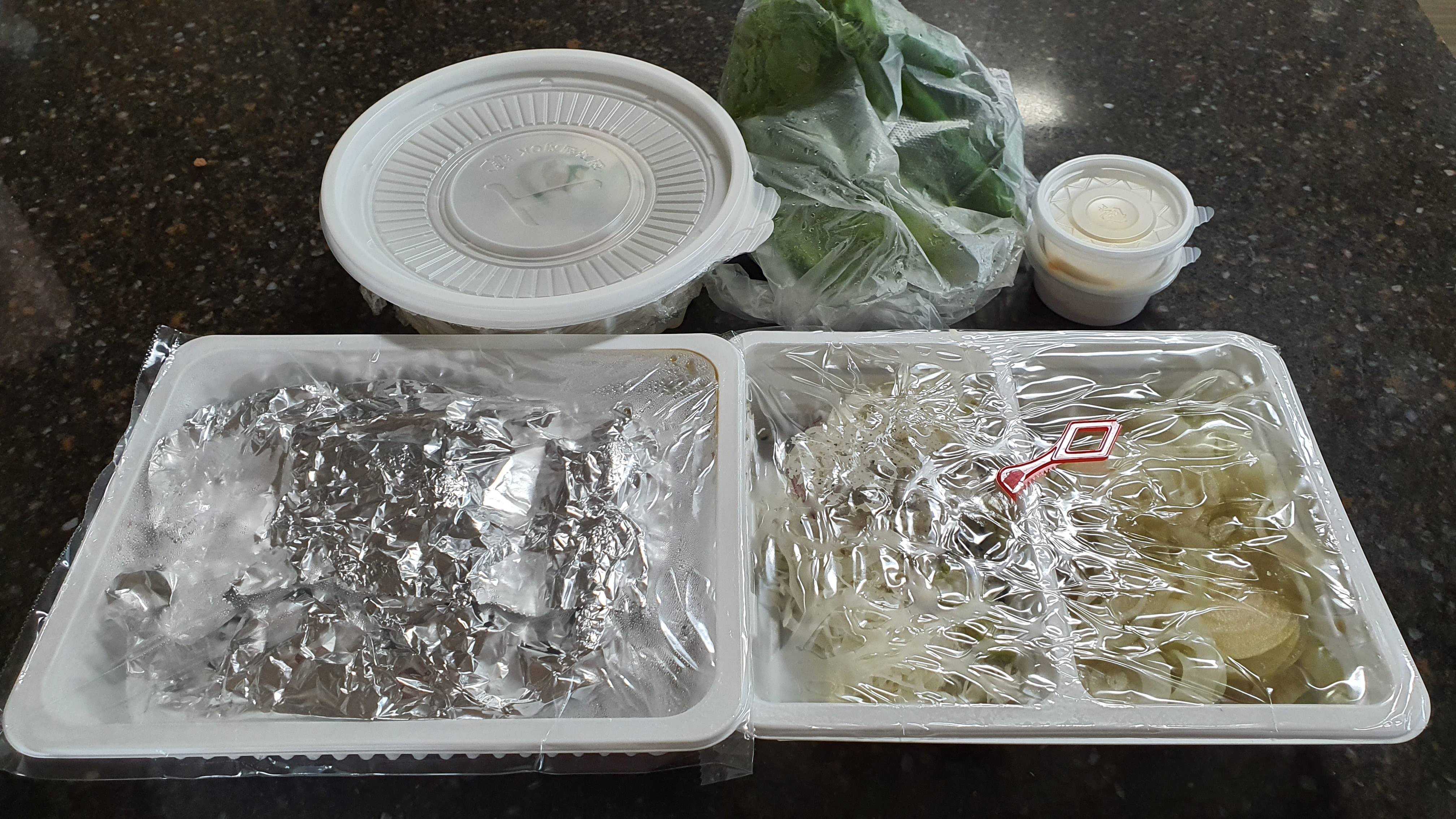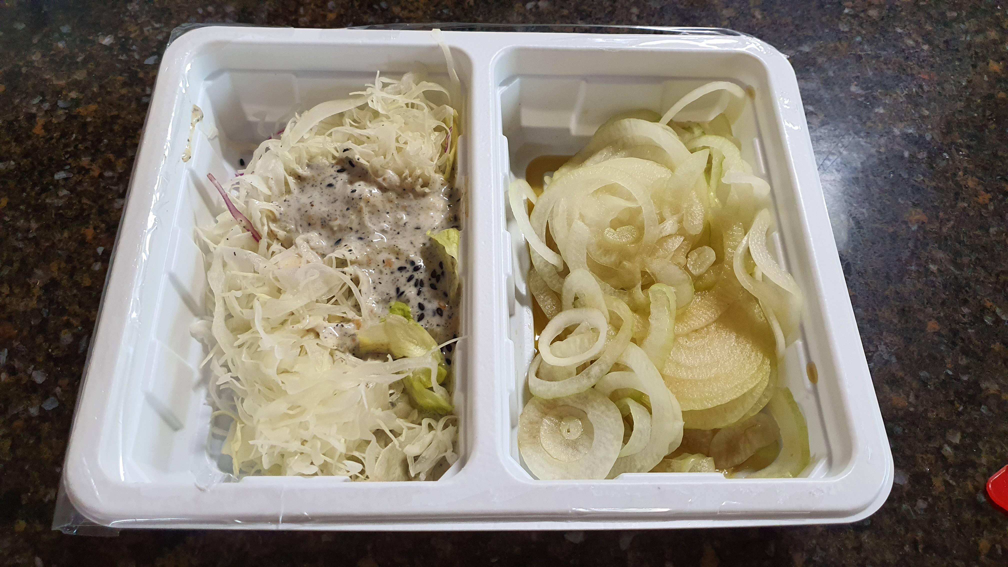 샐러드랑 양파가 정말 한가득입니다.