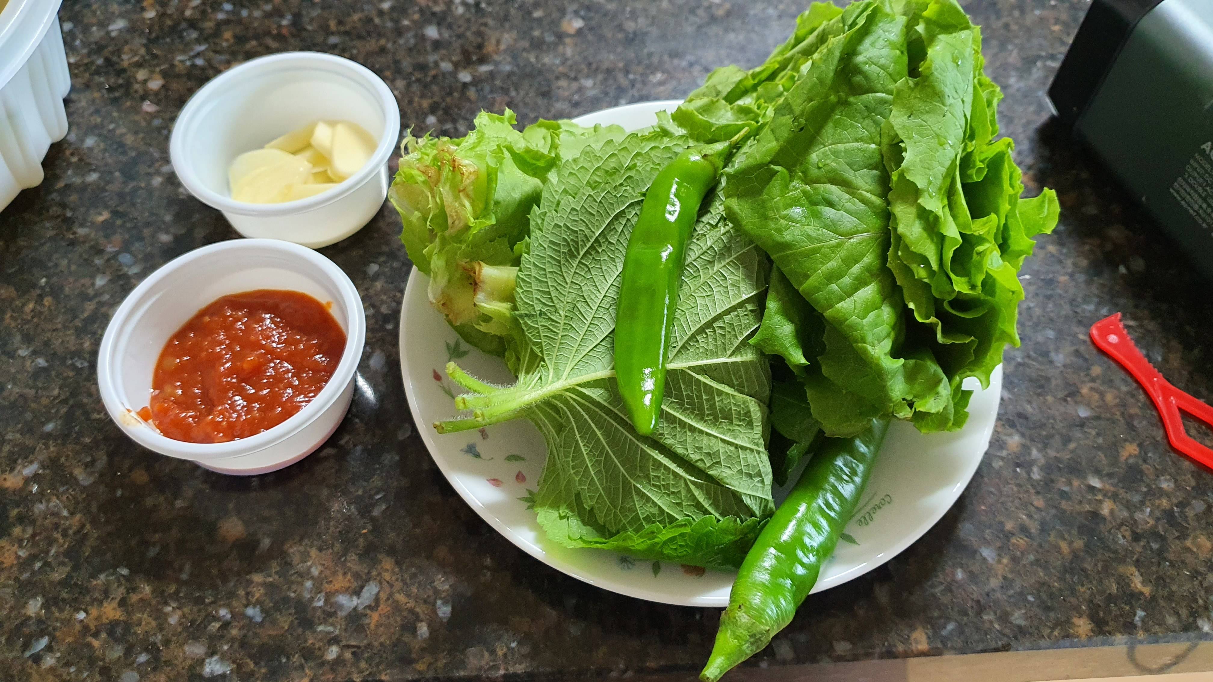 쌈채소도 한가득 넣어 주셨습니다.
