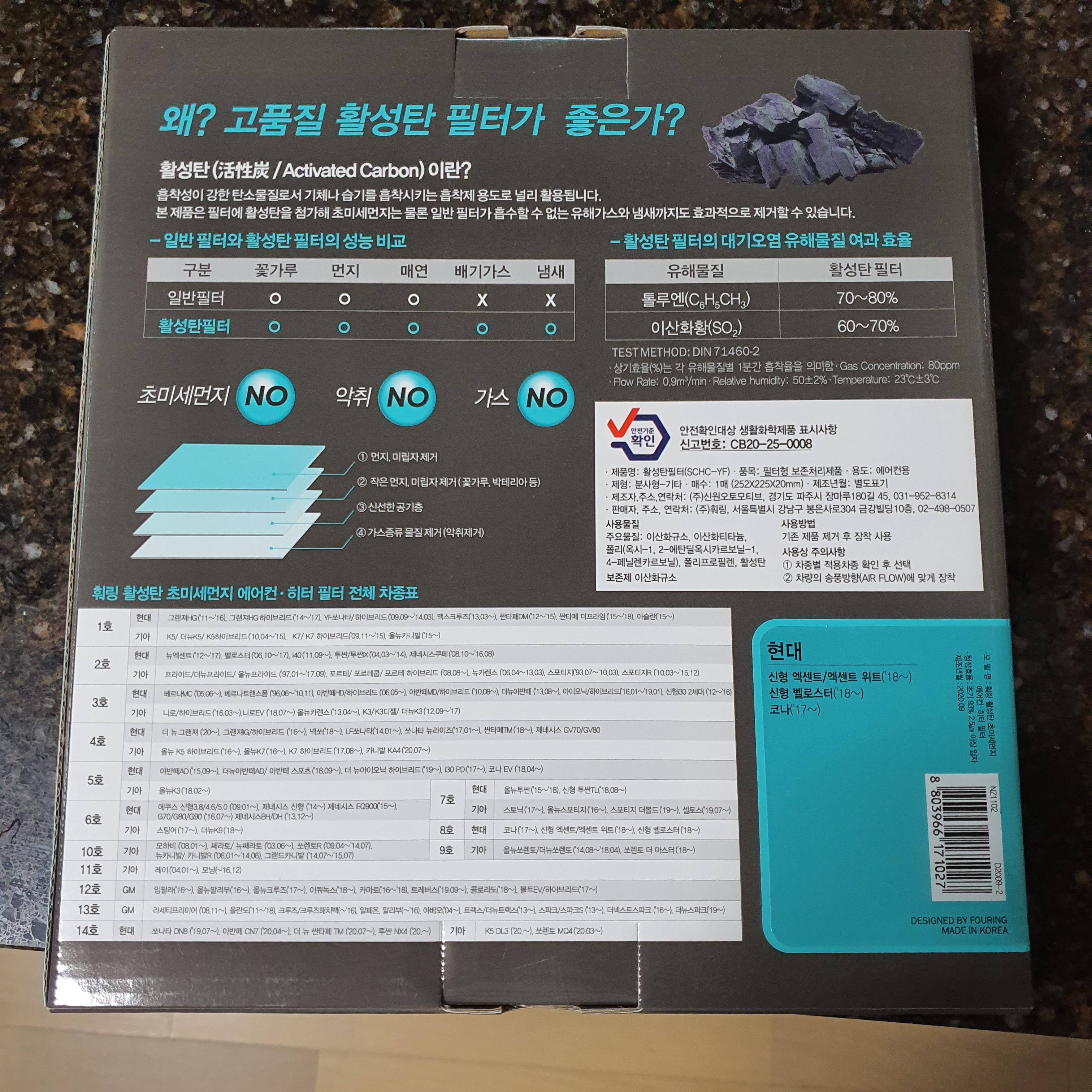 차량용 에어컨 필터마다 적용되는 차종이 다 다르기 때문에 제품 설명에 나와 있는
