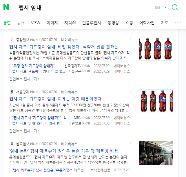 무려 "펩시 암내"라고만 검색해도 그 검색 결과가 우후 주순 나오는 걸 볼 수 있습니다.
