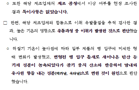 다만 원문에도 기재되었듯이 올해 무더운 여름 기온 상승에 의하여 병 입구부의 열변형이 발생하였고