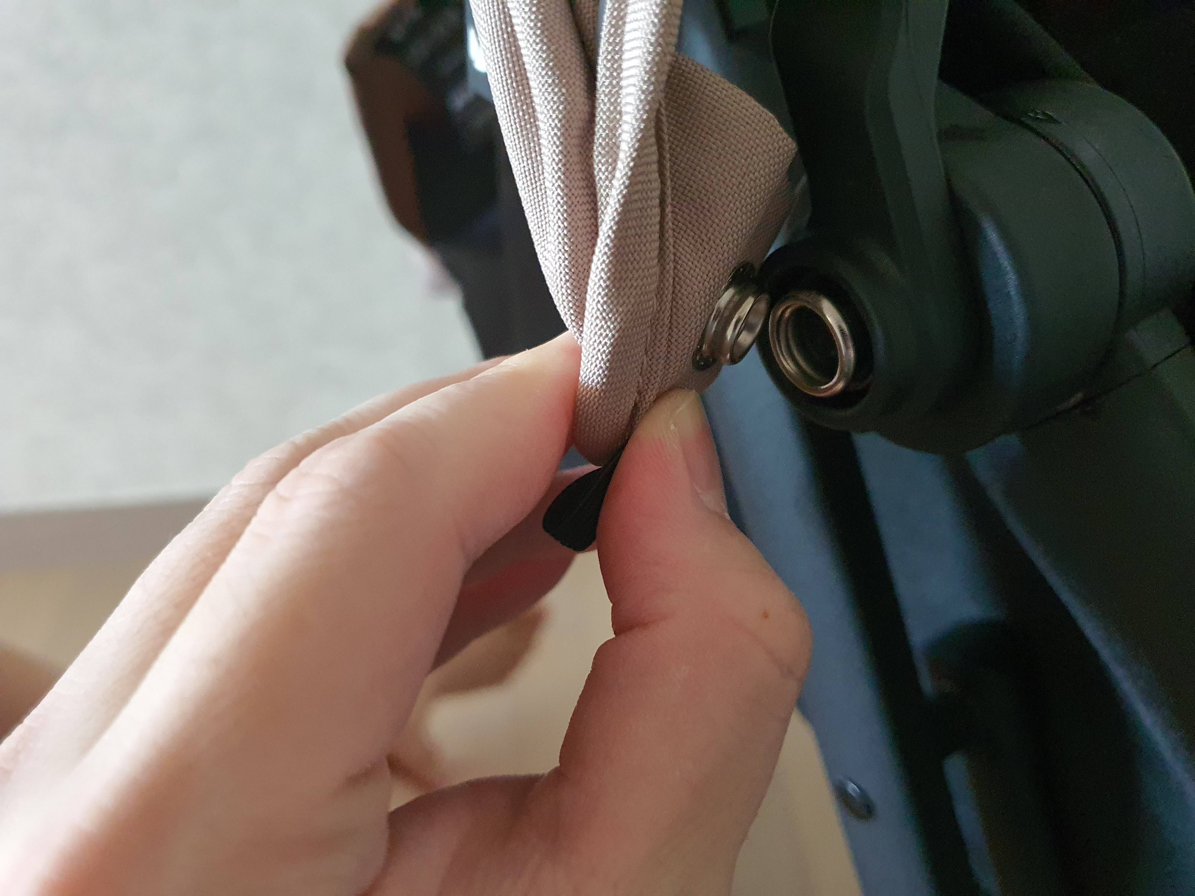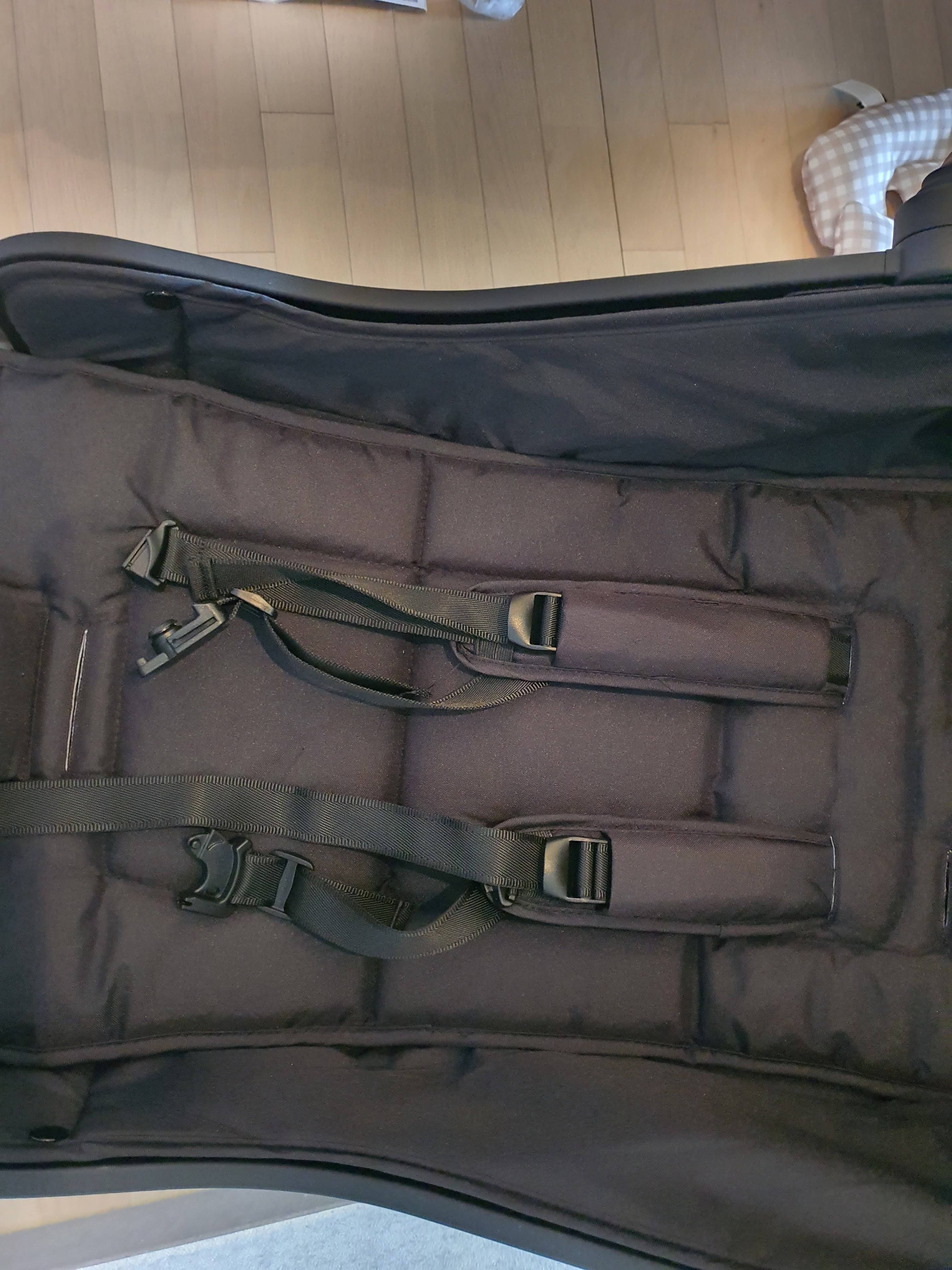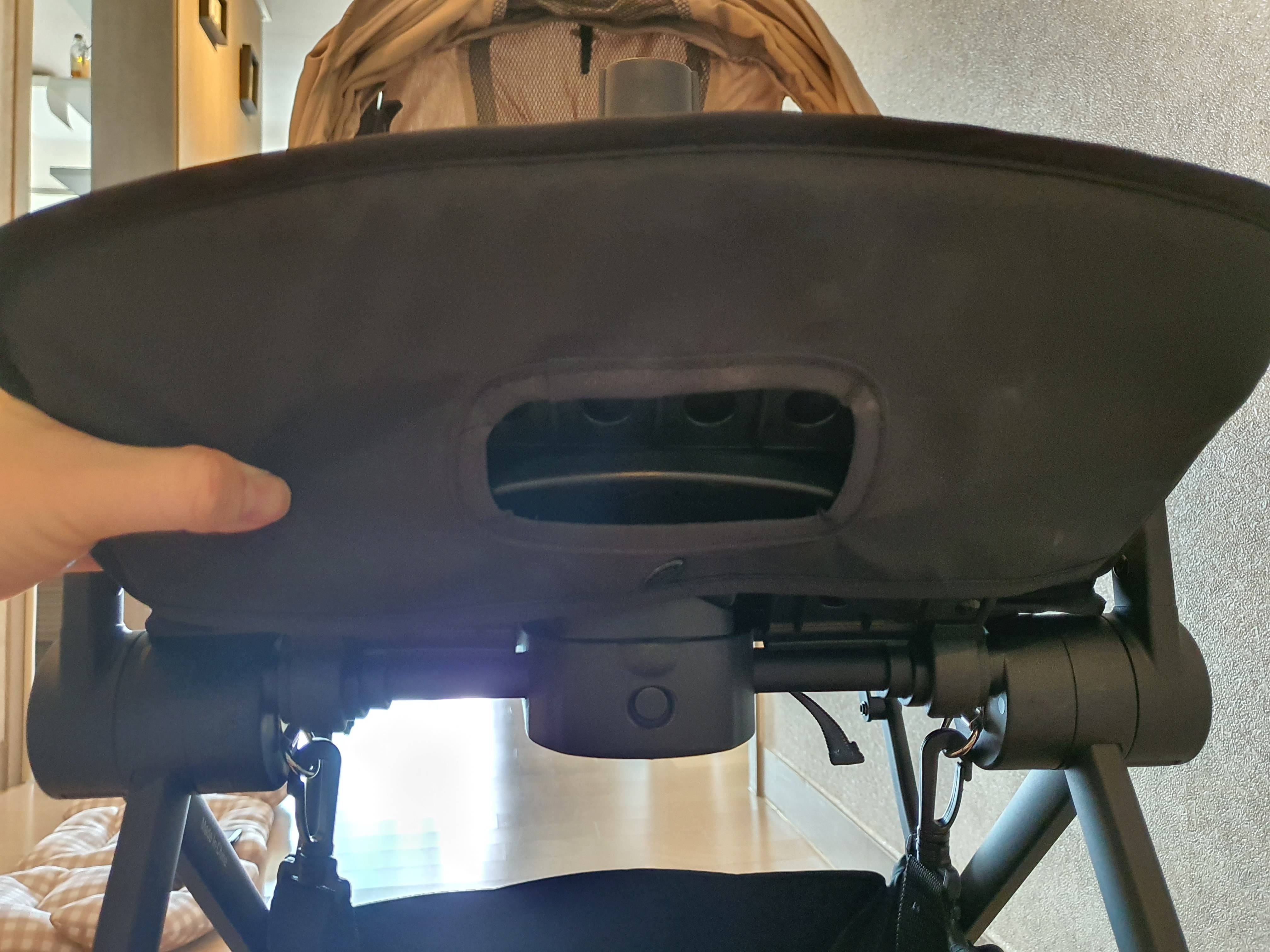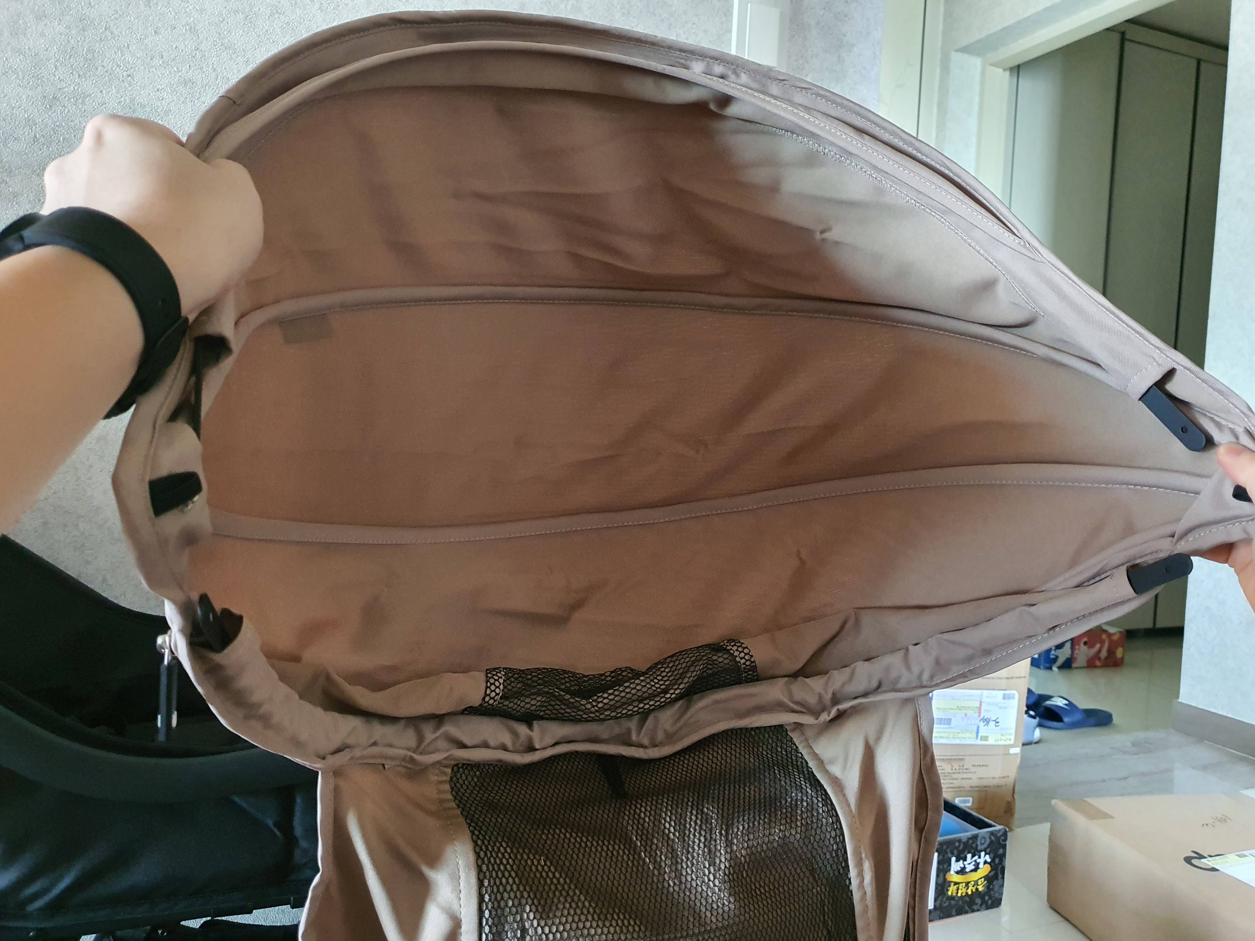 일단 벨크로로 고정된 추가 시트에 기존에 유모차 본체에 고정되어 있는 벨트들이 나갈 수 있도록