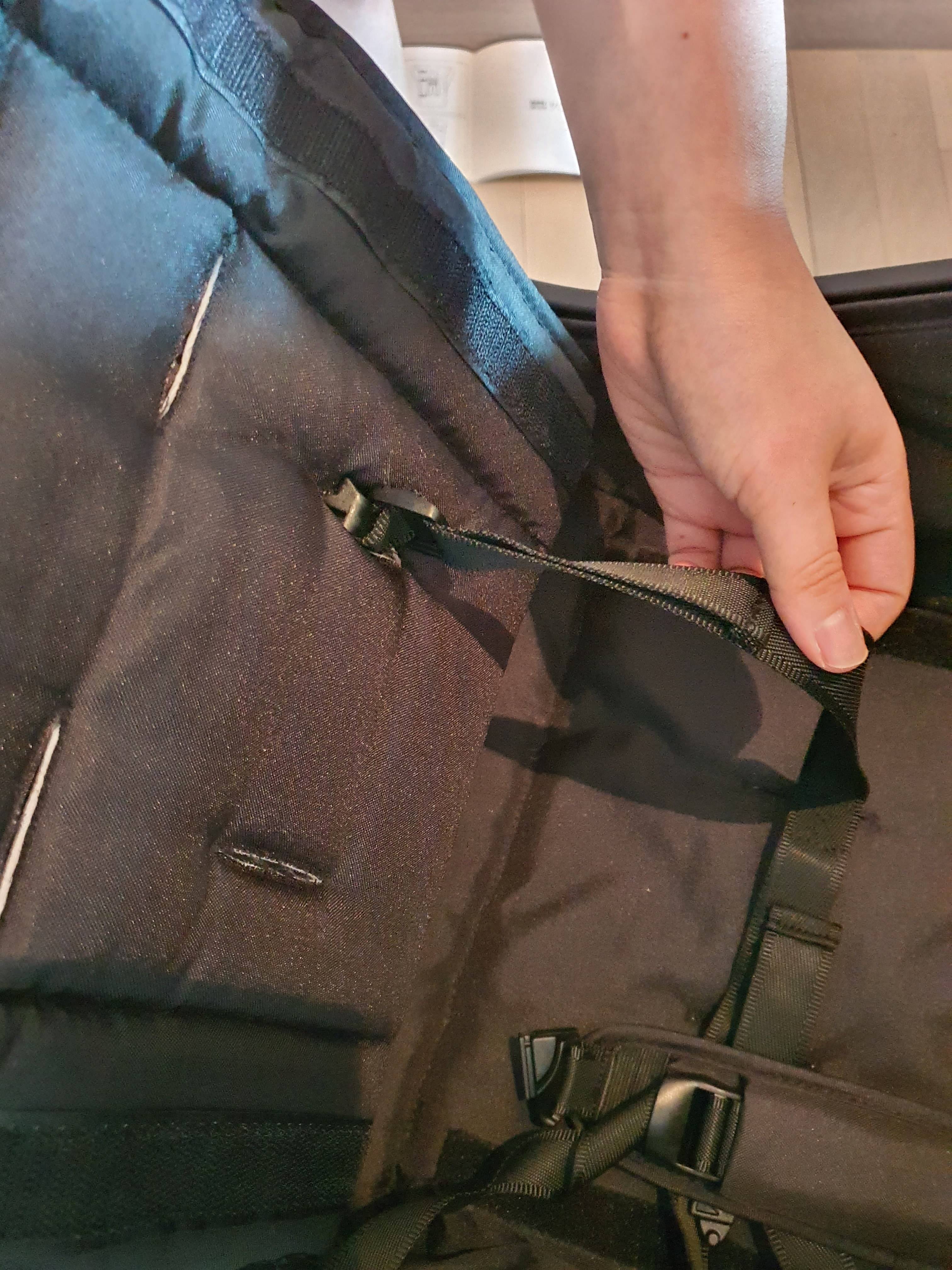 보관 가방 안에서의 고정은 어떻게 되어 있나 싶어서 살짝 위에만 풀고 안을 보니 폴딩 된 본체 바디에