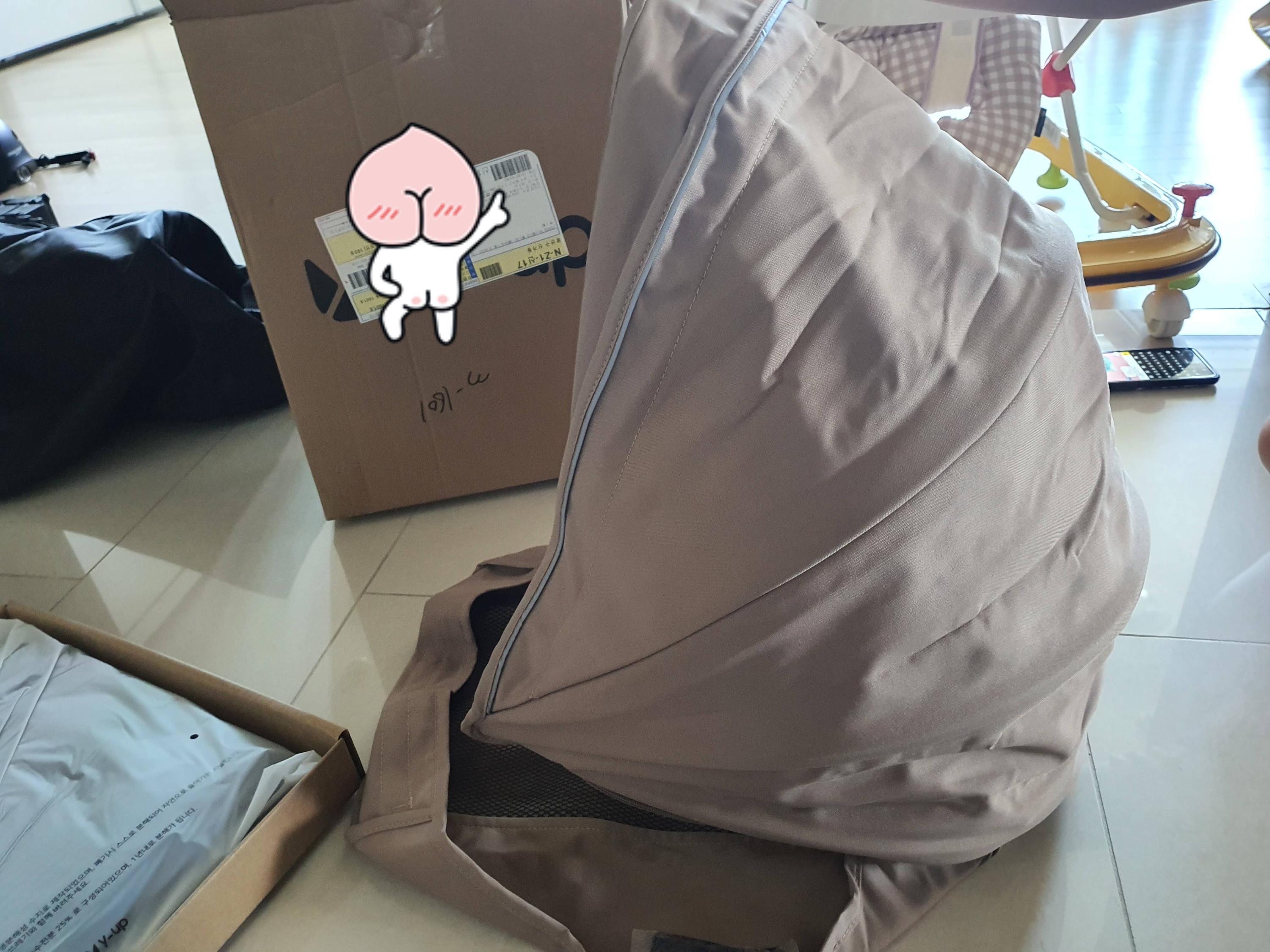 두 번째 상자 안에는 유모차의 덮개인 캐노피와 아이가 눕고 앉는 부분인 기본 시트 위에