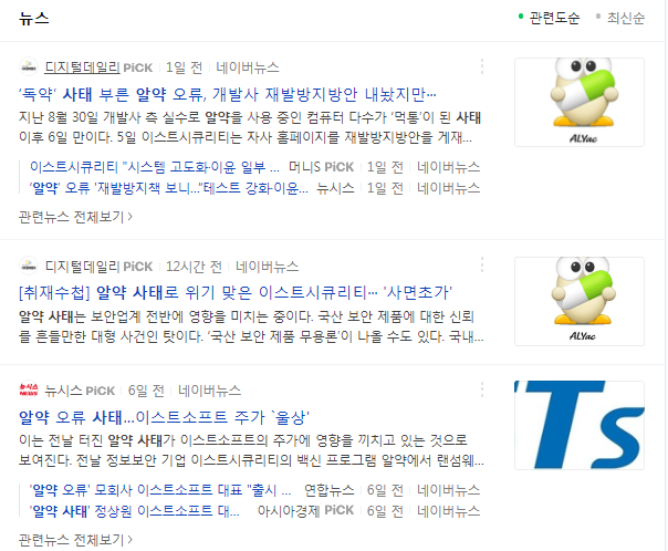 알약(ALYAC)의 랜섬웨어 오진으로 큰일난 이스트시큐리티