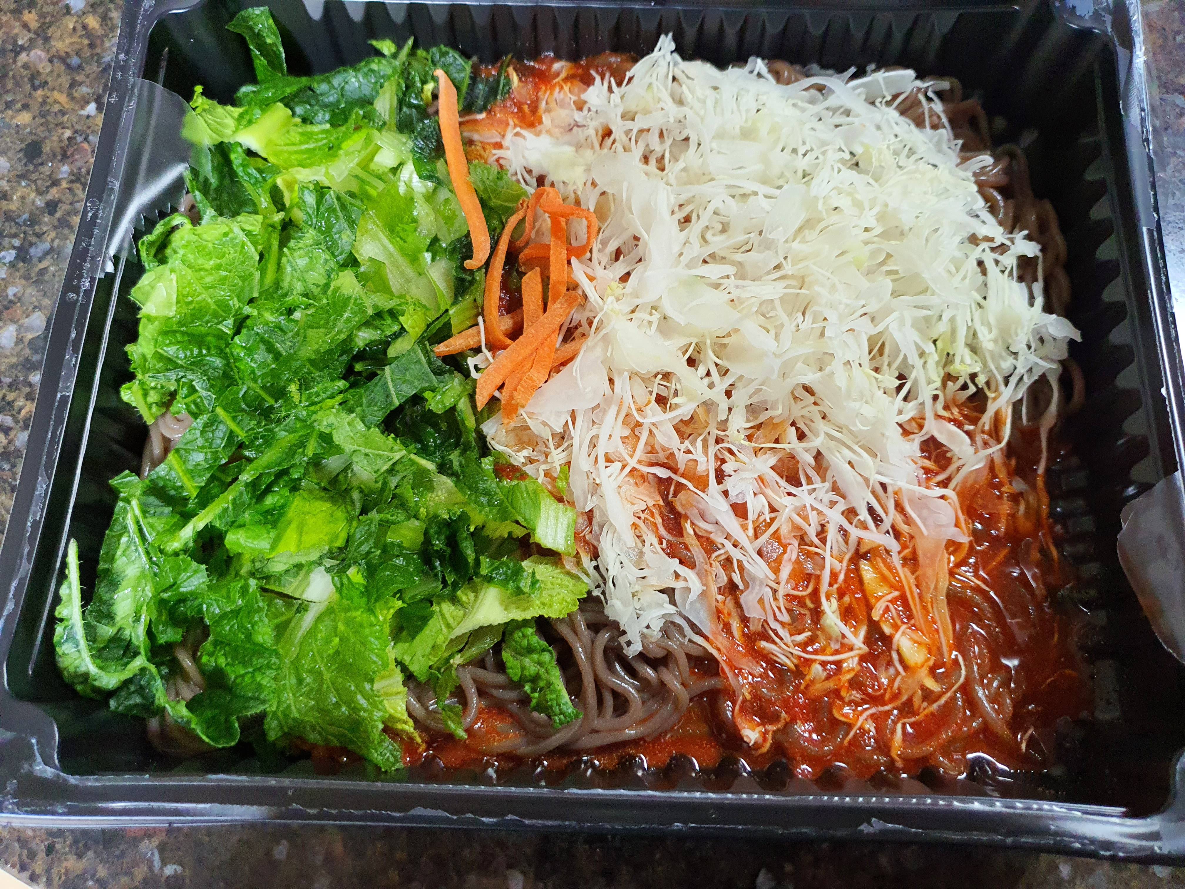야채가 듬뿍 들어가서 국수면이 조금 적어 보이는 게 흠이라면 흠인데 막상 비벼서 먹어보니