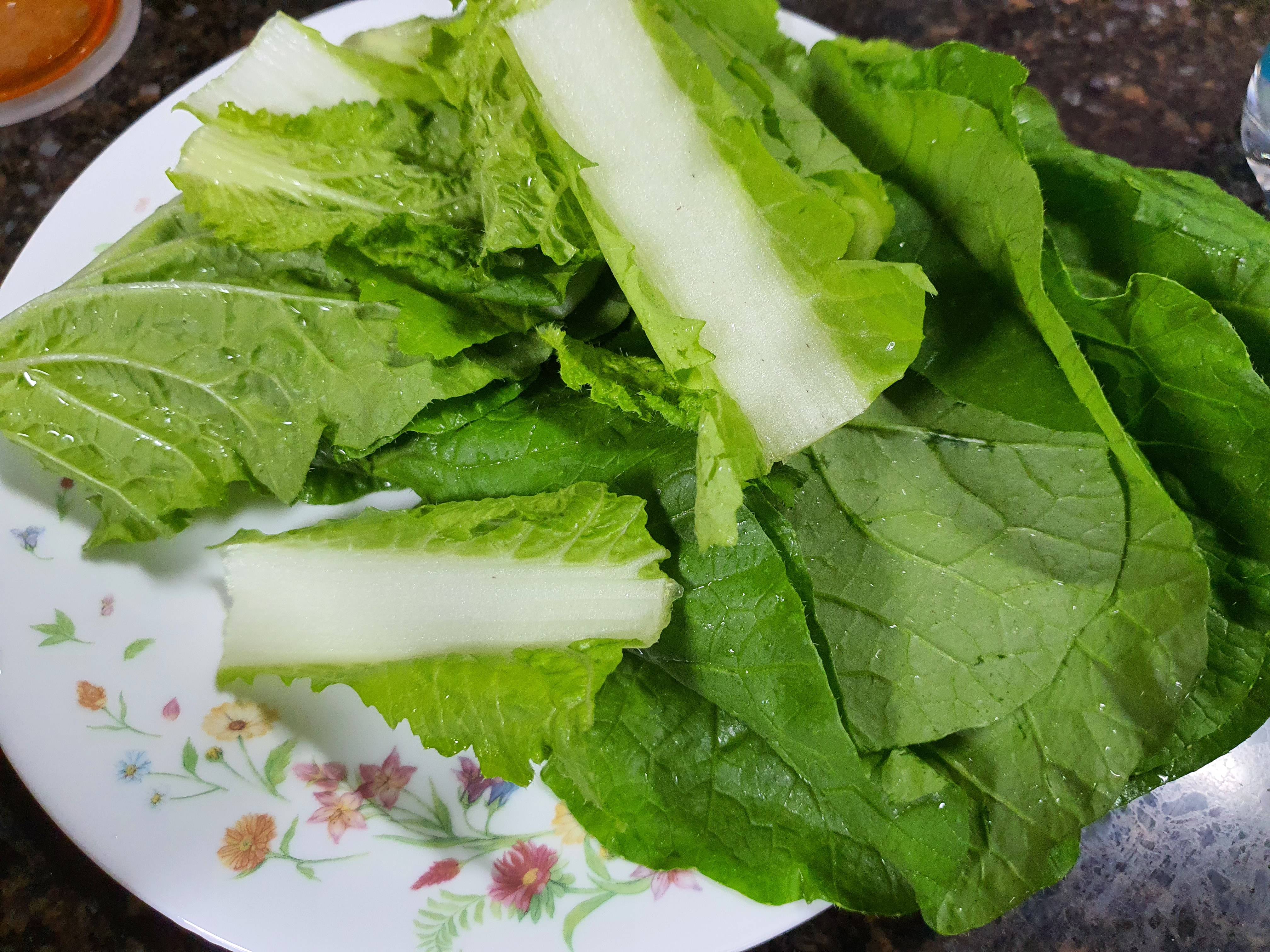 원래 쌈 채소는 상추랑 깻잎이 국룰인데 이상하게 요렇게 다른 종류의 쌈 채소가 왔습니다.