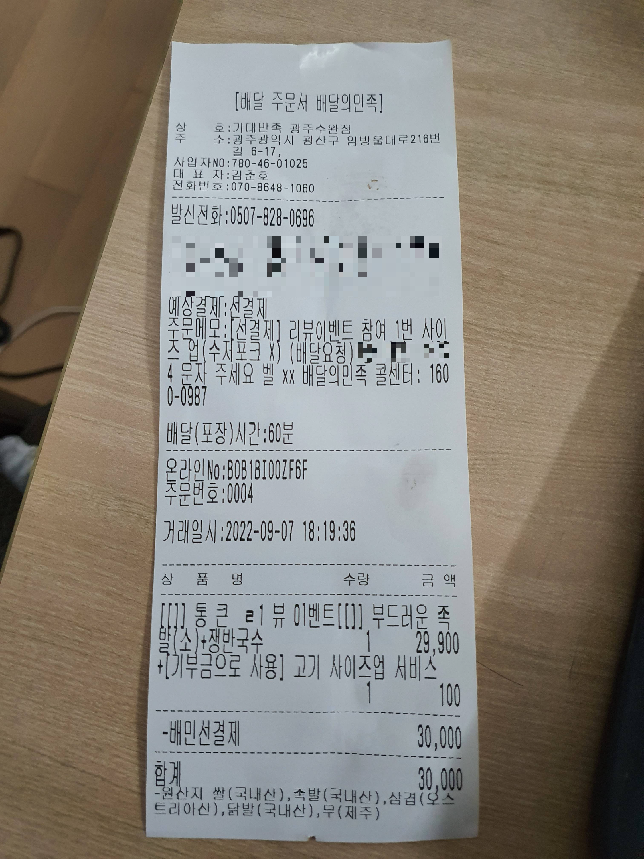 참고로 저희가 주문한 기대만족 수완지구점에서는 현재 이벤트 중이어서
