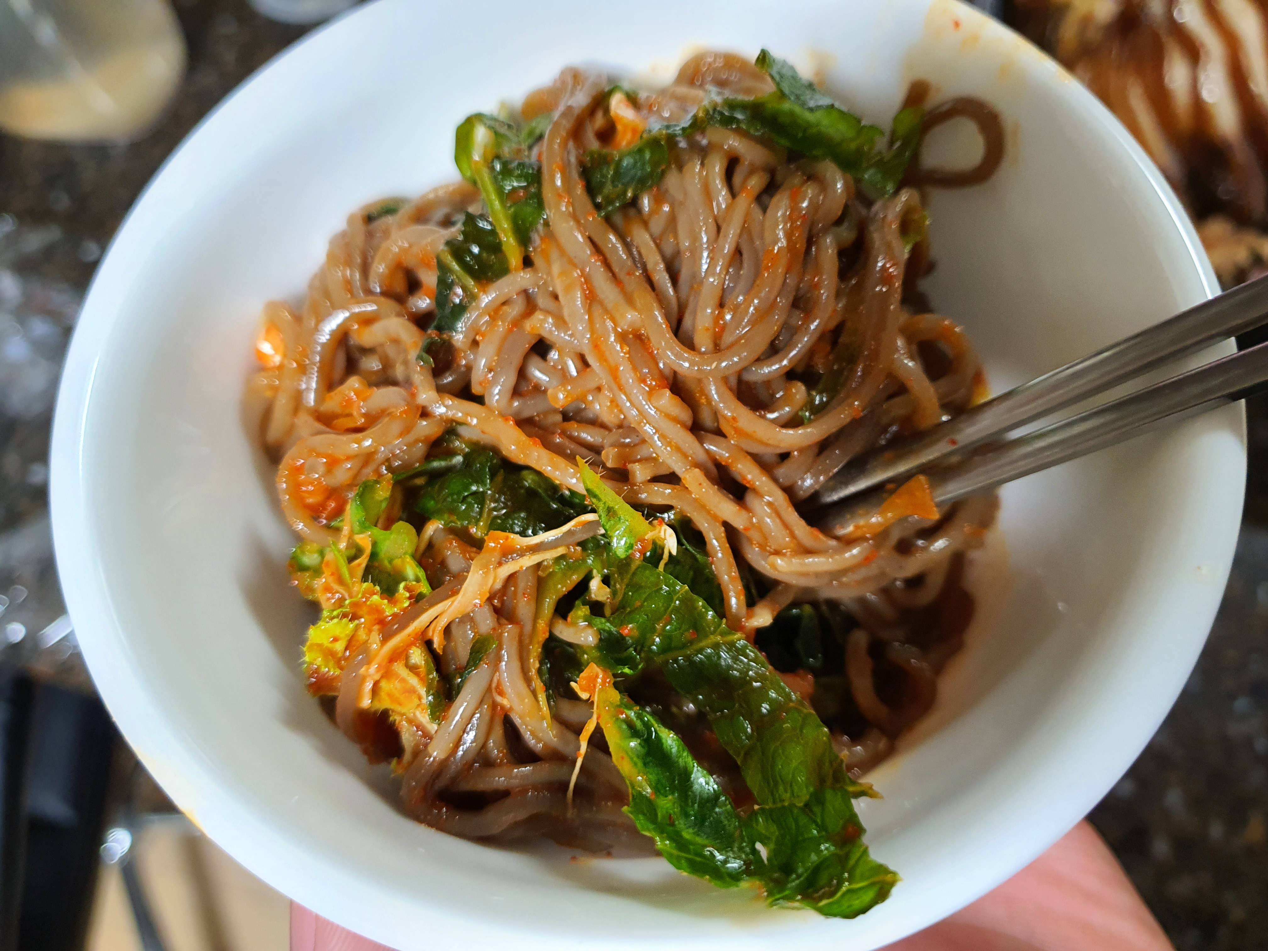 열심히 비비고 나서 한컷 찍은 쟁반국수입니다.