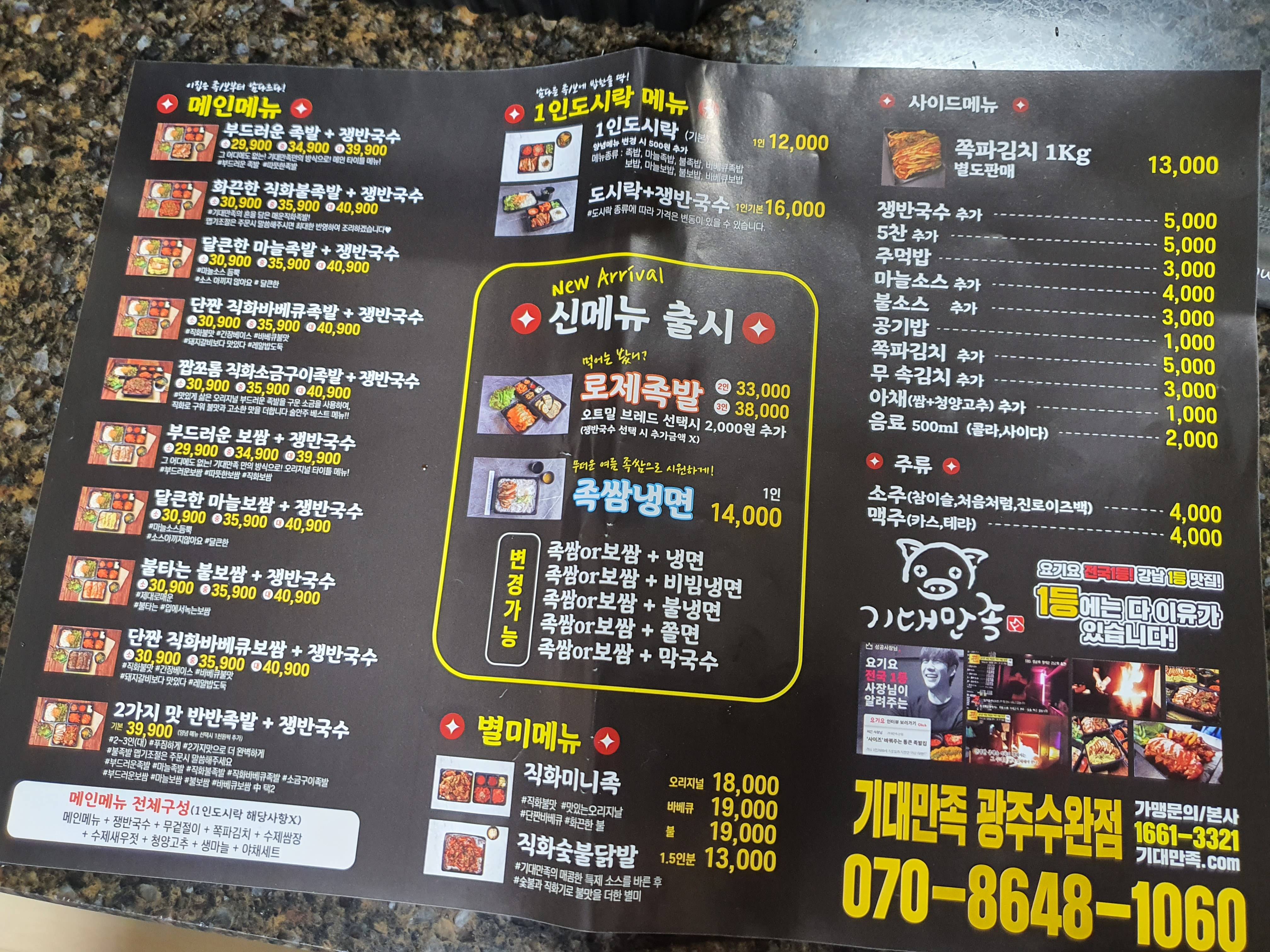 기대만족 광주수완점의 메뉴는 이러한 구성으로 판매를 하고 있습니다.