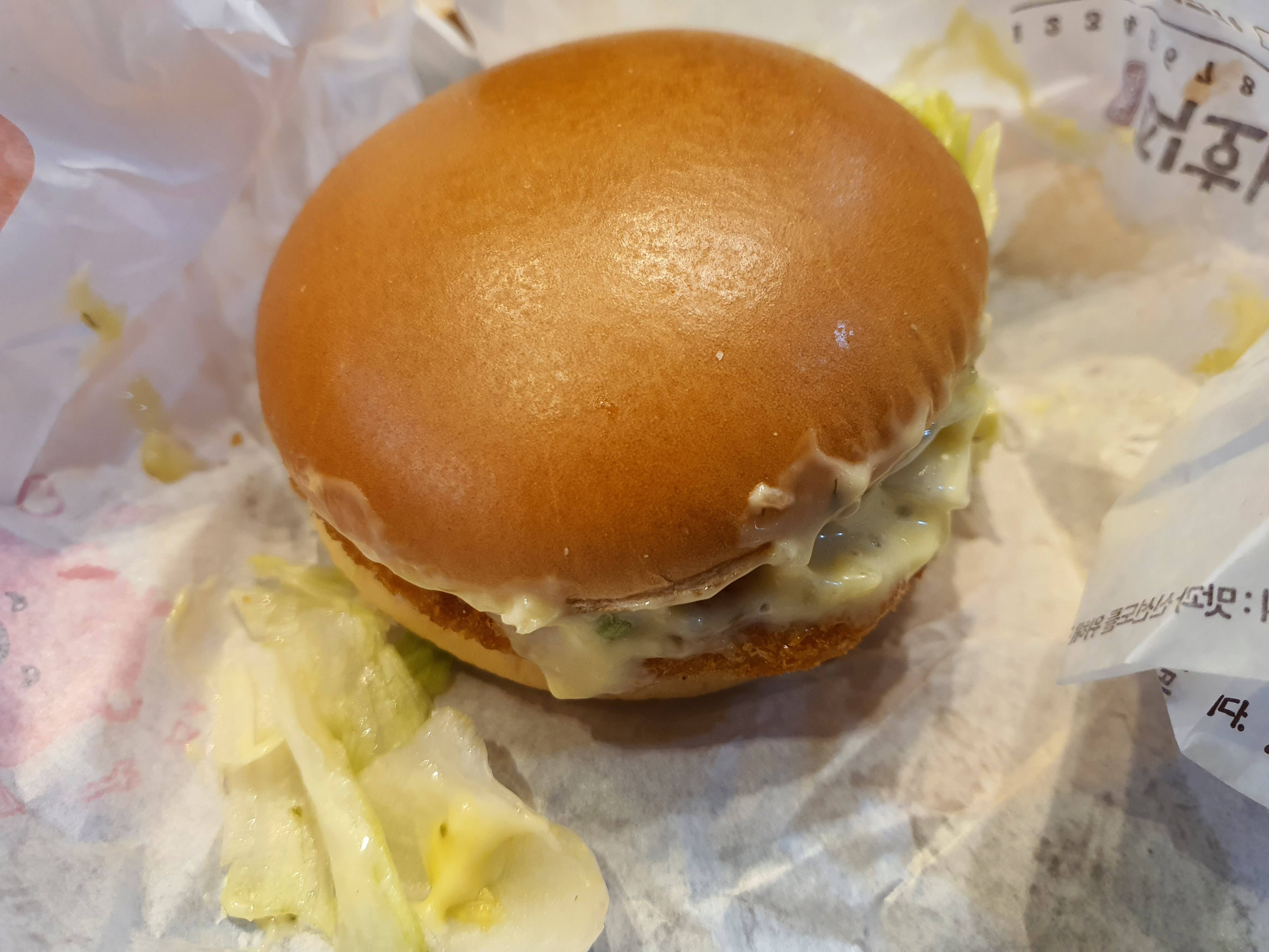 맛을 설명드리자면 롯데리아 명태 버거 패티에 너무 듬뿍 들어간 머스터드 소스로 미각을 잃는 맛이라는