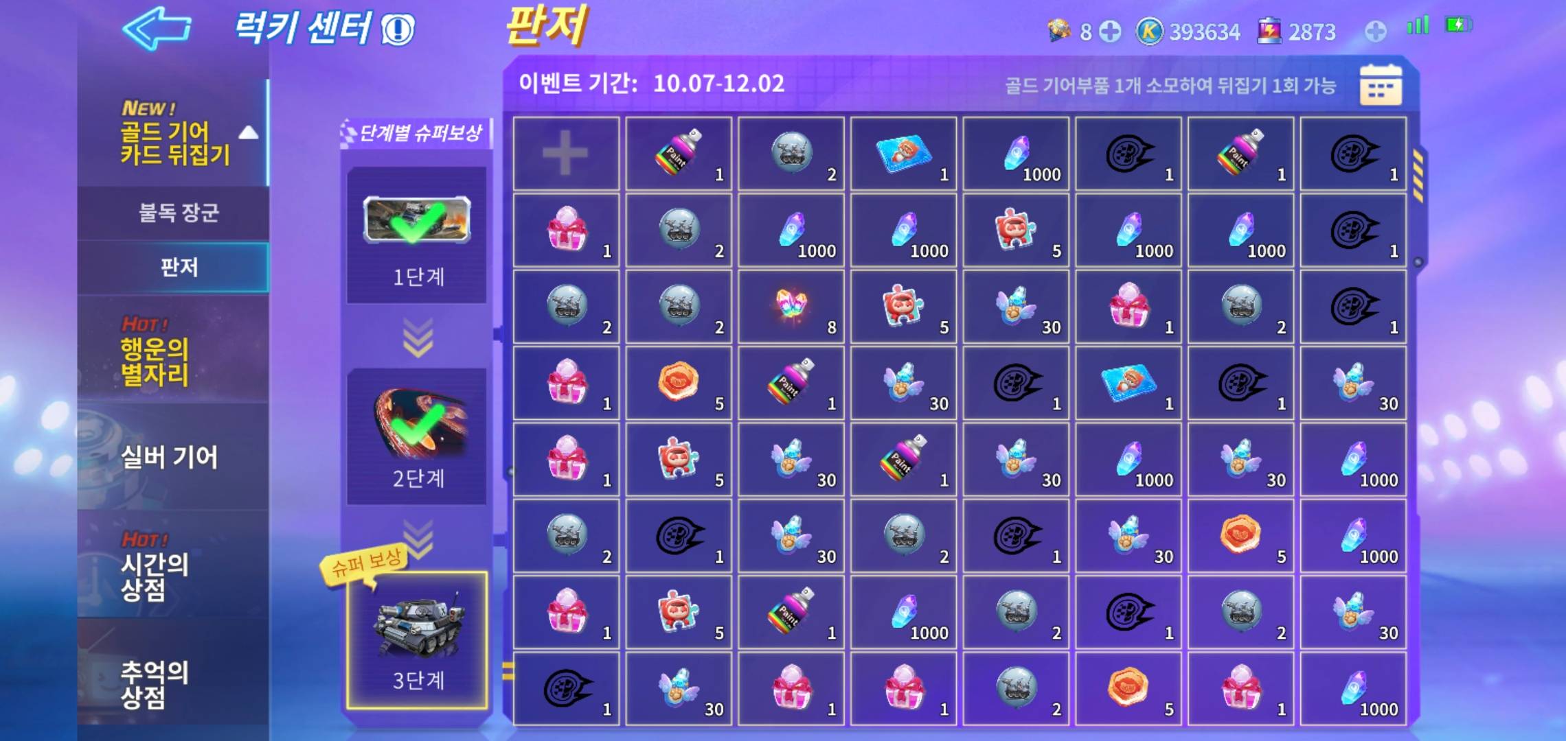 해당 칸의 인게임 재화들은 골드 기어부품의 소모 없이 자동으로 공짜로 받아집니다.